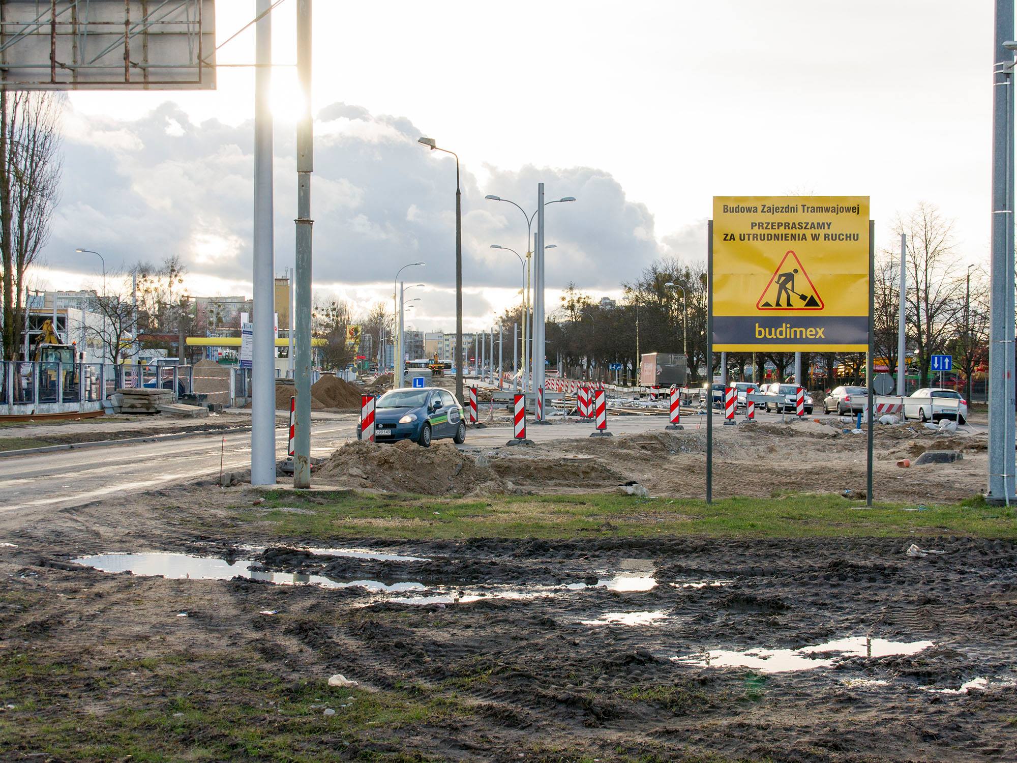 Budowa linii tramwajowej w ulicy Towarowej (3 kwietnia 2015) Fot. Paweł Bukowski