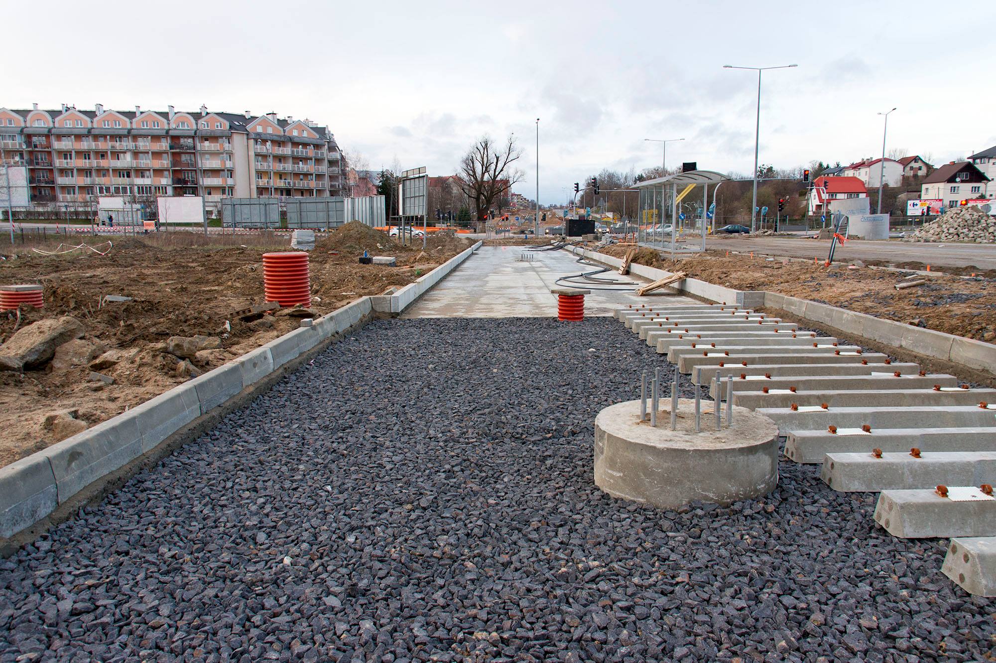 Budowa linii tramwajowej przy ulicy Płoskiego (4 kwietnia 2015)