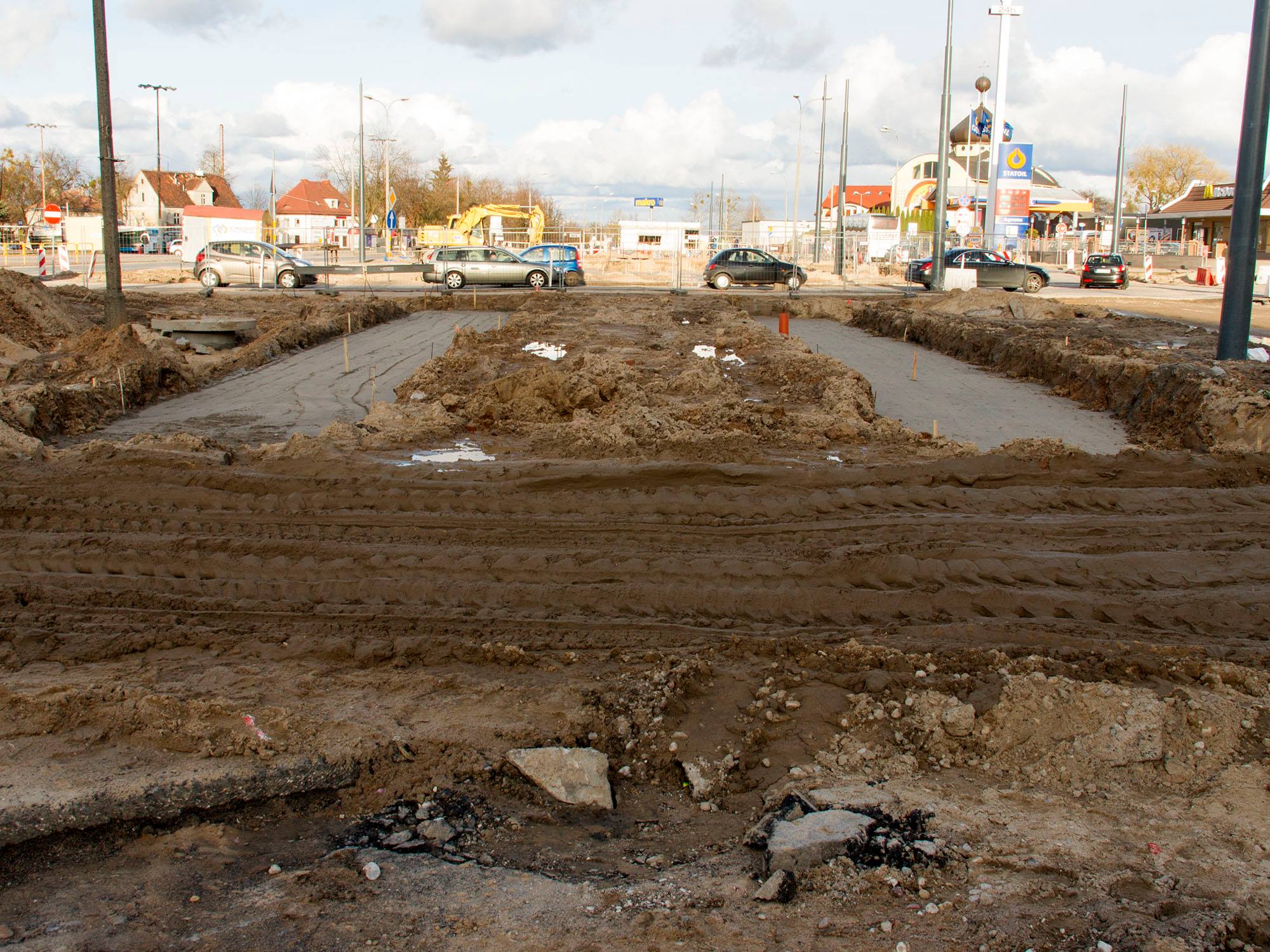 Budowa przystanku końcowego linii tramwajowej na placu Konstytucji 3 Maja (3 kwietnia 2015) Fot. Paweł Bukowski