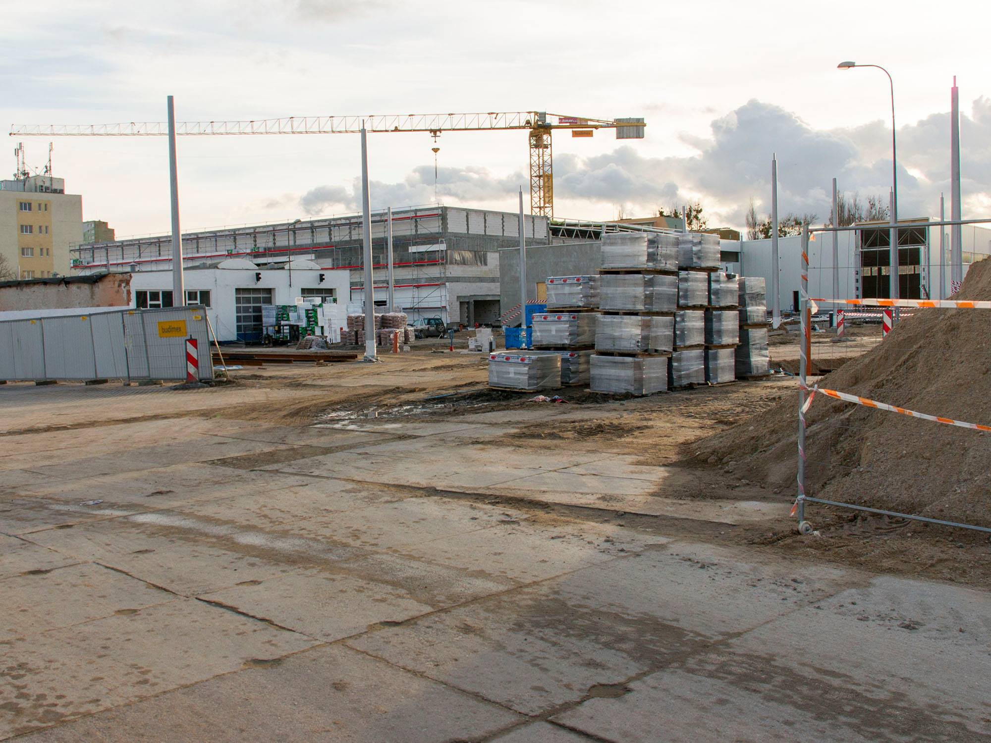 Budowa zajezdni tramwajowej przy ulicy Towarowej (3 kwietnia 2015) Fot. Paweł Bukowski