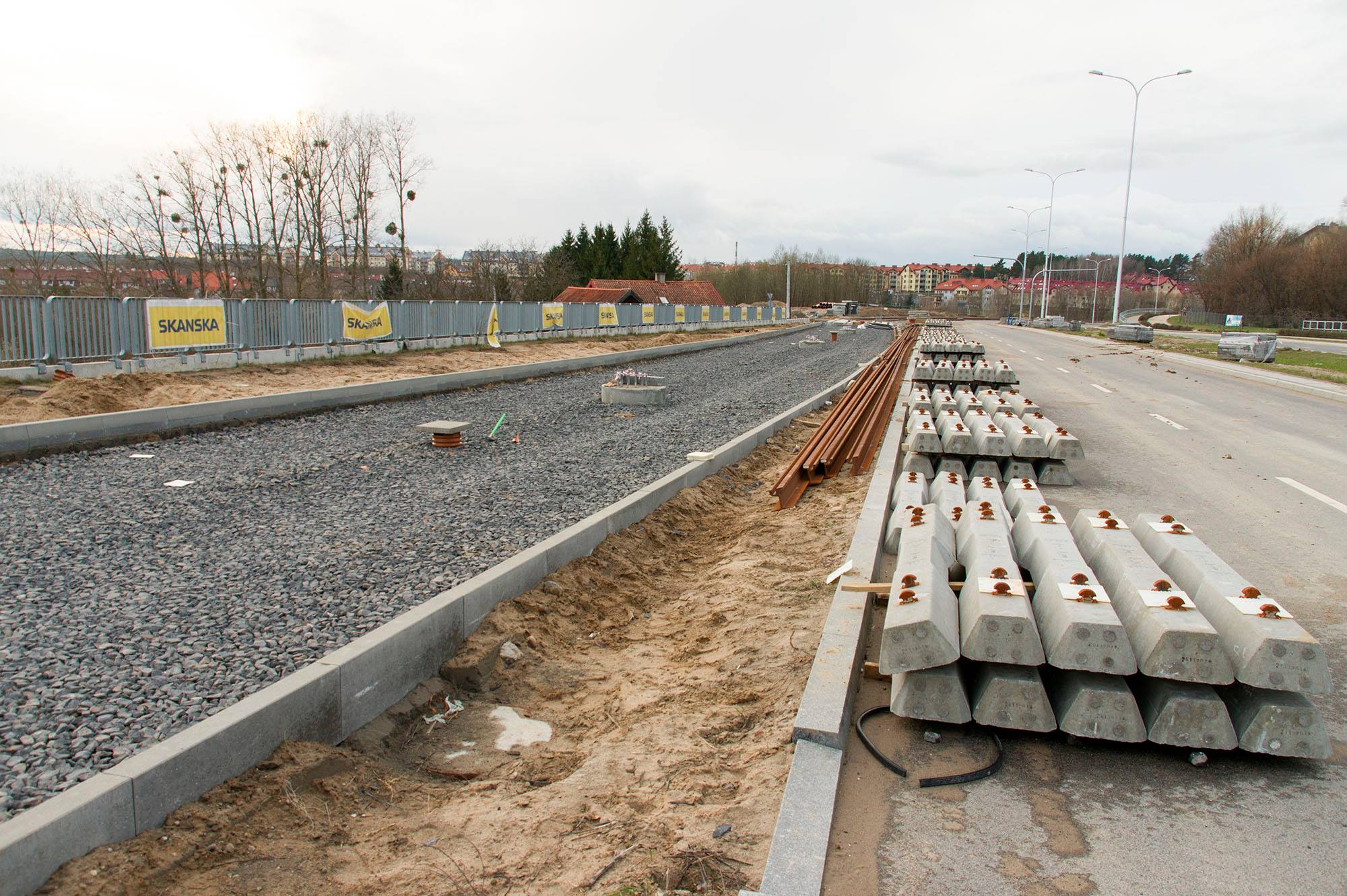 Budowa linii tramwajowej przy ulicy Płoskiego (4 kwietnia 2015)
