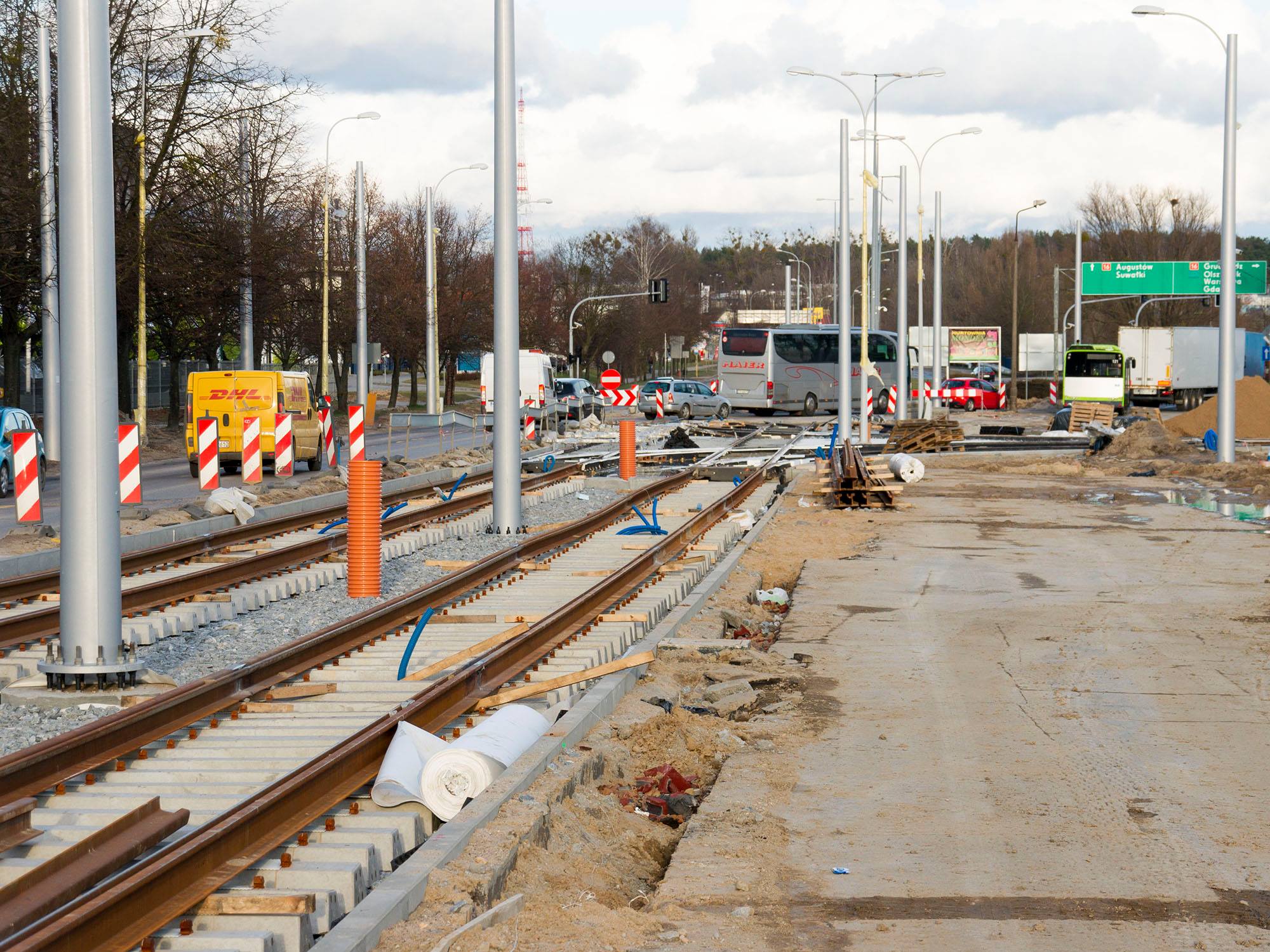 Budowa linii tramwajowej w ulicy Towarowej (3 kwietnia 2015) Fot. Paweł Bukowski