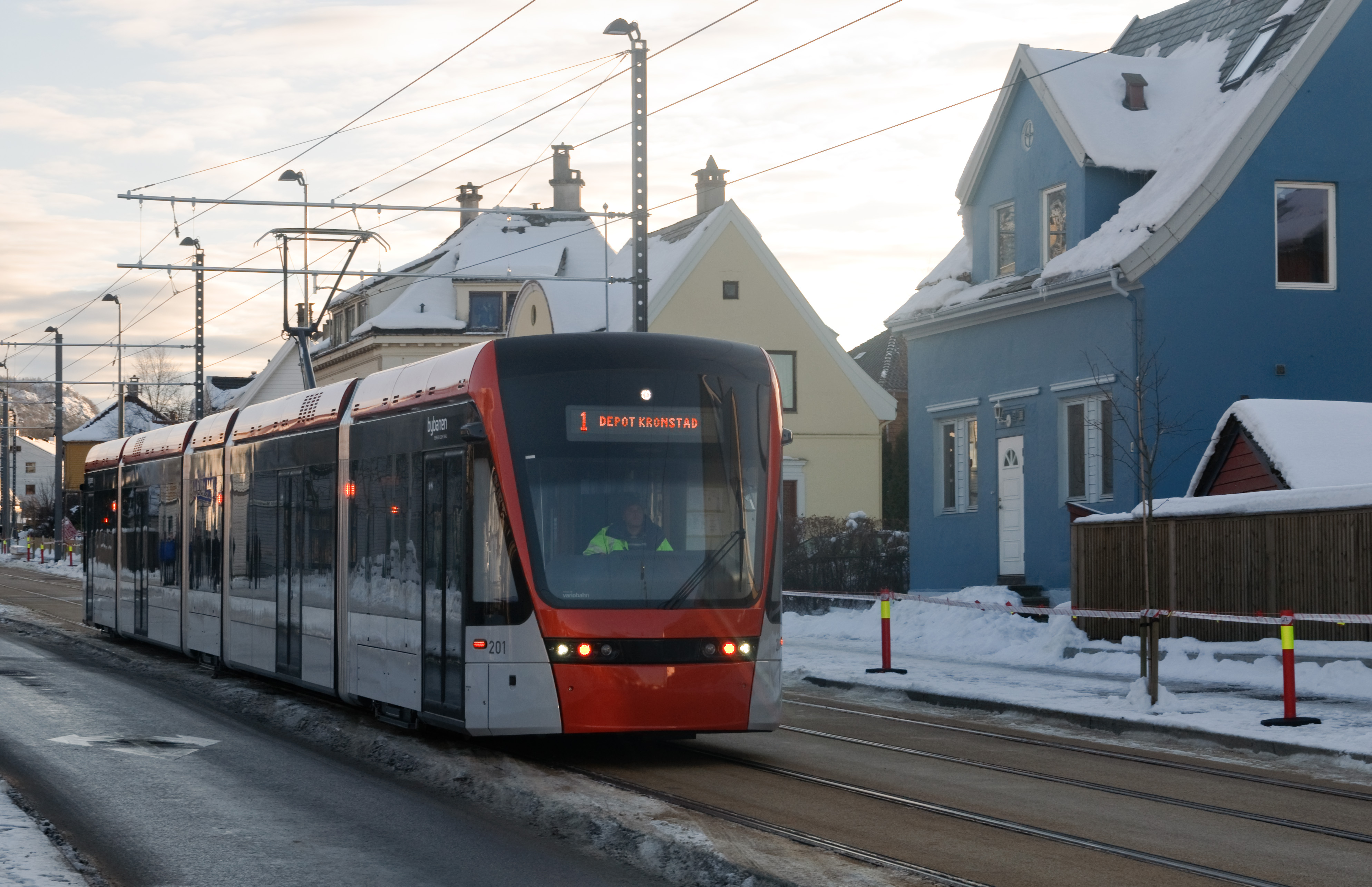 Inne jakże praktyczne udogodnienia to inny kolor asfaltu na torowisku – żaden kierowca nie wytłumaczy się, że pasy po zimie nie odmalowane, a mandaty w Norwegii potrafią człowieka zubożyć znacznie – oraz sygnalizacja wzbudzana przez tramwaj. Wystarczy policzyć, ile razy zielone światło (czyli pionowa kreska) zapala się, gdy nadjeżdża tramwaj. A kiedy tak się przez dłuższą chwilę nie dzieje, to najwyraźniej jest to błąd, bo motorniczy wysiada i zaczyna majstrować przy sygnalizatorze (pamiętajmy, że to przejazd testowy). Warto zwrócić uwagę, że na części ulic w śródmieściu tam, gdzie porusza się tramwaj, nie ma ruchu samochodowego, a po torowisku kursują jedynie autobusy.