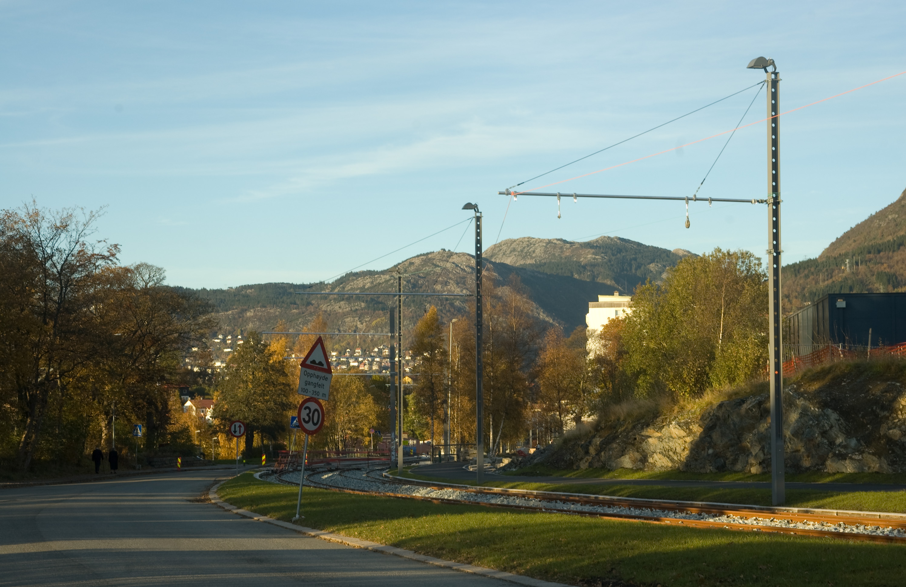 250-tysięczne – a więc niedużo większe od Olsztyna, dzięki czemu porównywalne – Bergen jest drugim pod względem liczby ludności miastem Norwegii. Leży nad brzegiem fiordu, u podnóża sporych wzgórz, więc – podobnie jak będzie to w Olsztynie – przy budowie linii tramwajowej zmagano się tam z różnicą wzniesień i kwestią przecinania terenów zielonych o dużej wartości ekologicznej. Losy komunikacji tramwajowej w „norweskim Krakowie” też nieco przypominają olsztyńskie: tramwaje ruszyły na przełomie XIX i XX wieku – w 1897 roku (10 lat wcześniej niż w Olsztynie) i kursowały do… 1965 roku (brzmi znajomo, prawda?). O ile ostatni – jak na razie – olsztyński tramwaj wyruszył w trasę 20 listopada 1965 roku, to ostatni zjazd do zajezdni przed tegoroczną reaktywacją miał miejsce w Bergen w noworoczny poranek 1966 roku. I tak jak w stolicy Warmii odtworzona linia tramwajowa będzie biegła niemal w całości innym śladem niż historyczna, tak i w Bergen nowe tramwaje jeżdżą zupełnie inną trasą niż pół wieku temu.