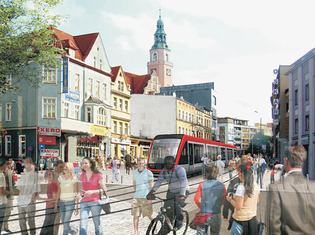 Gdyby koniec trasy miał znaleźć się na początku alei Piłsudskiego, to nieekonomiczne byłoby budowanie przystanku końcowego przy samym skrzyżowaniu z ulicami Pieniężnego, 11 Listopada i 1 Maja, skoro niecałe 100 metrów dalej, przed centrum handlowym Alfa znajdzie się przystanek wraz z prowadzącym do niego przejściem podziemnym. Jeśli ostatni przystanek na trasie tramwaju rzeczywiście znajdzie się przed Alfą, to odległość z niego do Starego Miasta jest już znacznie większa i nie można tego nazwać komfortowym dojazdem. Zapomnijmy więc w takiej sytuacji o miastotwórczej roli, jaką mógłby pełnić tramwaj. Nie ożywi on już Starego Miasta, które obumiera od czasu otwarcia Alfy, bo nie będzie dowoził do starówki, a jedynie do konkurującej z nią galerii handlowej.