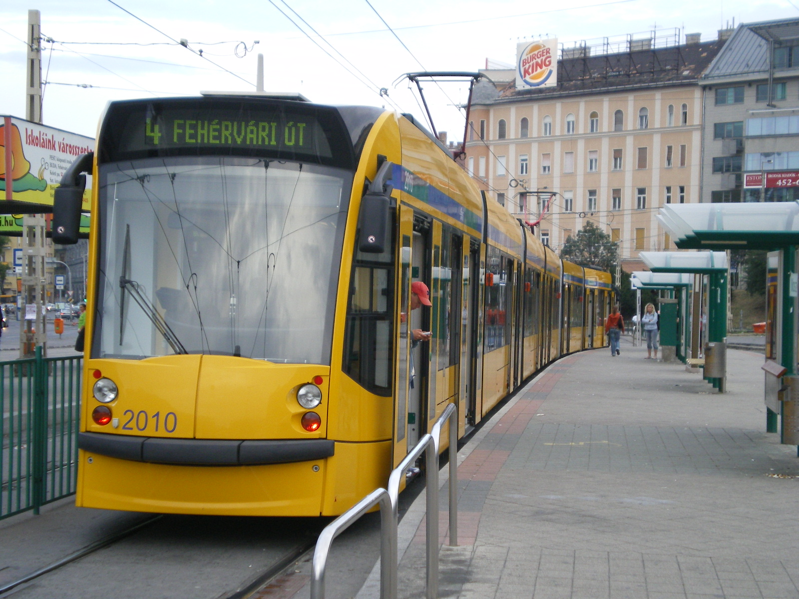 Budapeszteński Siemens Combino Plus (zwany też Combino Supra) na przystanku końcowym Moszkva tér. Ten 54-metrowiec jest najdłuższym tramwajem pasażerskim na świecie (dłuższy jest tylko 59,4-metrowy tramwaj towarowy kursujący po Dreźnie). Szybką wymianę pasażerów zapewnia siedem par podwójnych drzwi po każdej ze stron pojazdu (tramwaj jest dwukierunkowy) © OlsztyńskieTramwaje.pl
