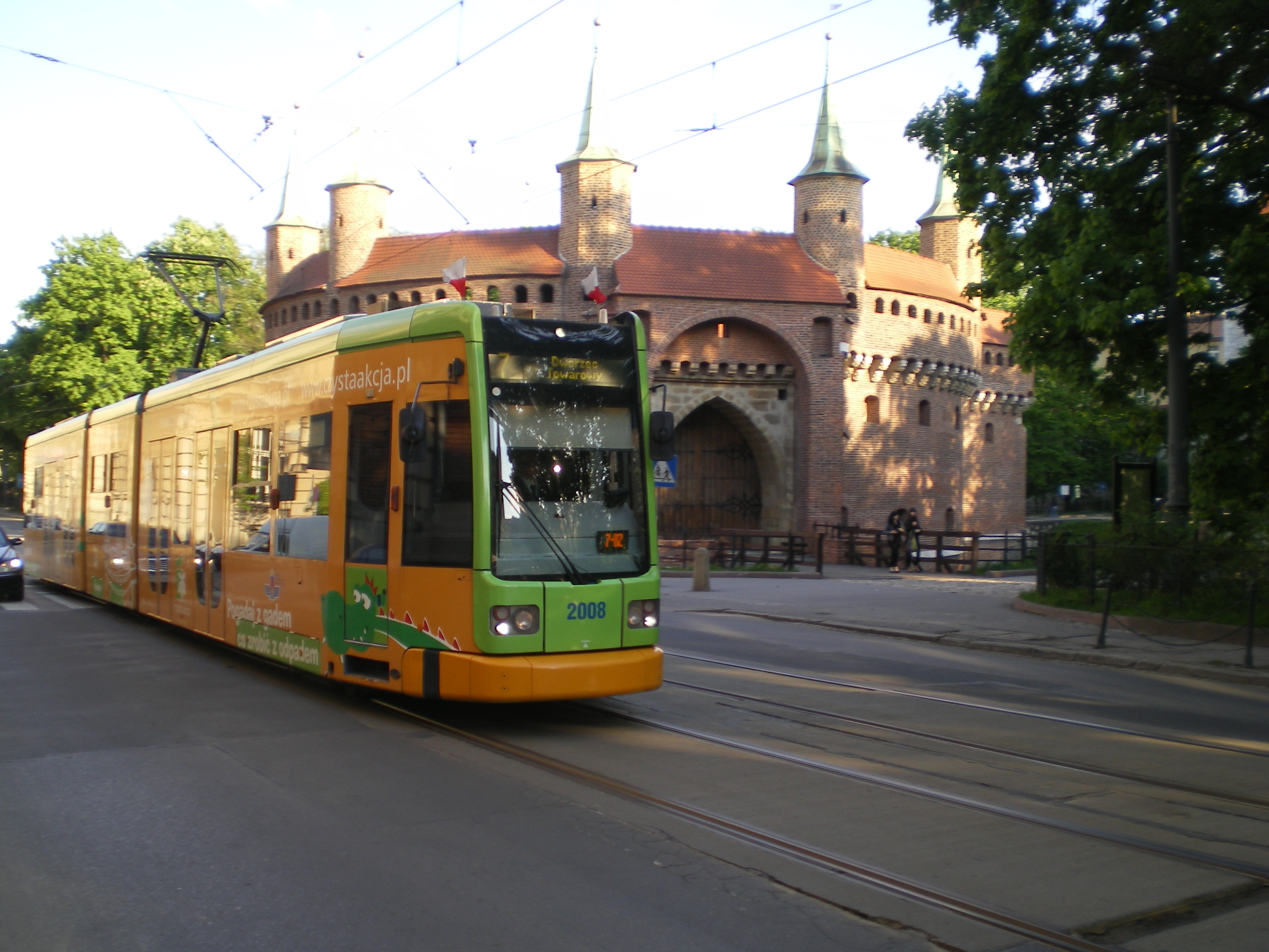 Bombardier NGT6 Kraków I mija krakowski Barbakan © OlsztyńskieTramwaje.pl