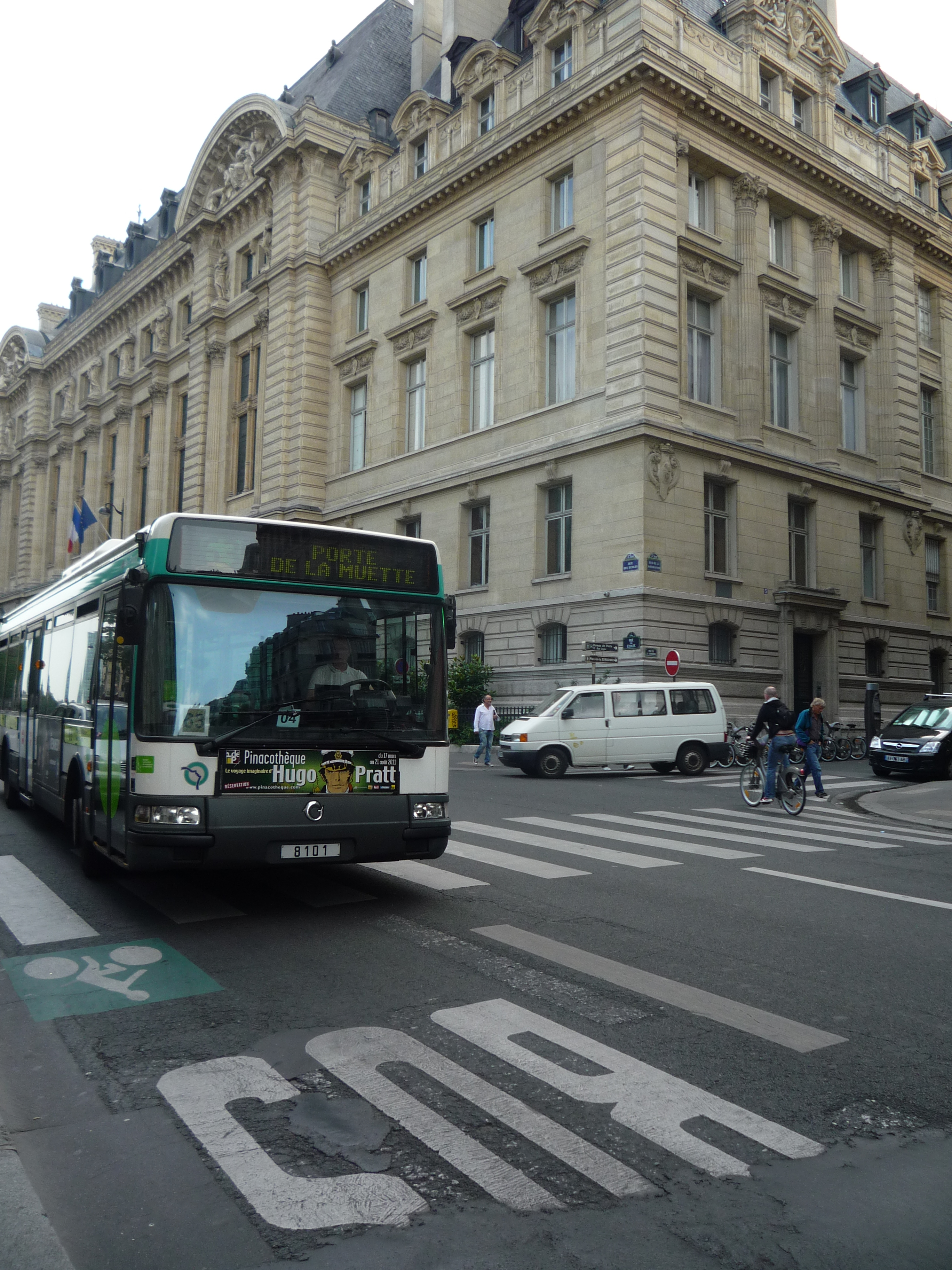 U nas pomysł buspasów w śródmieściu na razie przegrał, choć na szczęście wpisano je w plan rozwoju na najbliższe półtorej dekady. Bardziej cywilizowane kraje nie mają problemu z wytyczaniem pasów dla autobusów w gęsto zabudowanych centrach miast (i jeszcze wpuszczają na nie rowerzystów!) Na zdjęciu: buspas na Rue des Écoles w Paryżu (skrzyżowanie z Rue de la Sorbonne) Fot. Karolina Borkowska © OlsztyńskieTramwaje.pl