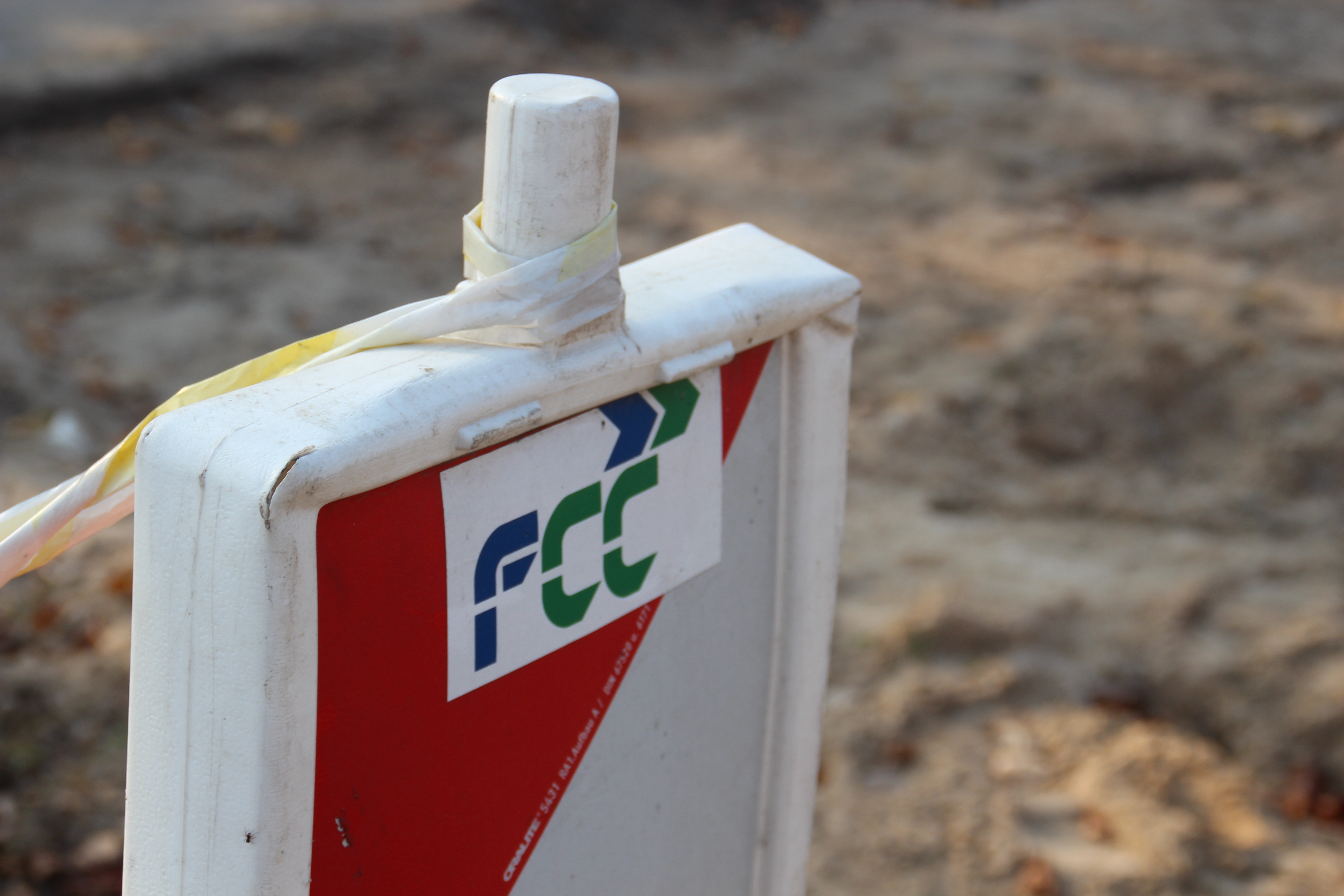 Pamiątka po Hiszpanach z FCC Construcción – na szczęście już tylko tyle mają do czynienia z olsztyńskim projektem © OlsztyńskieTramwaje.pl