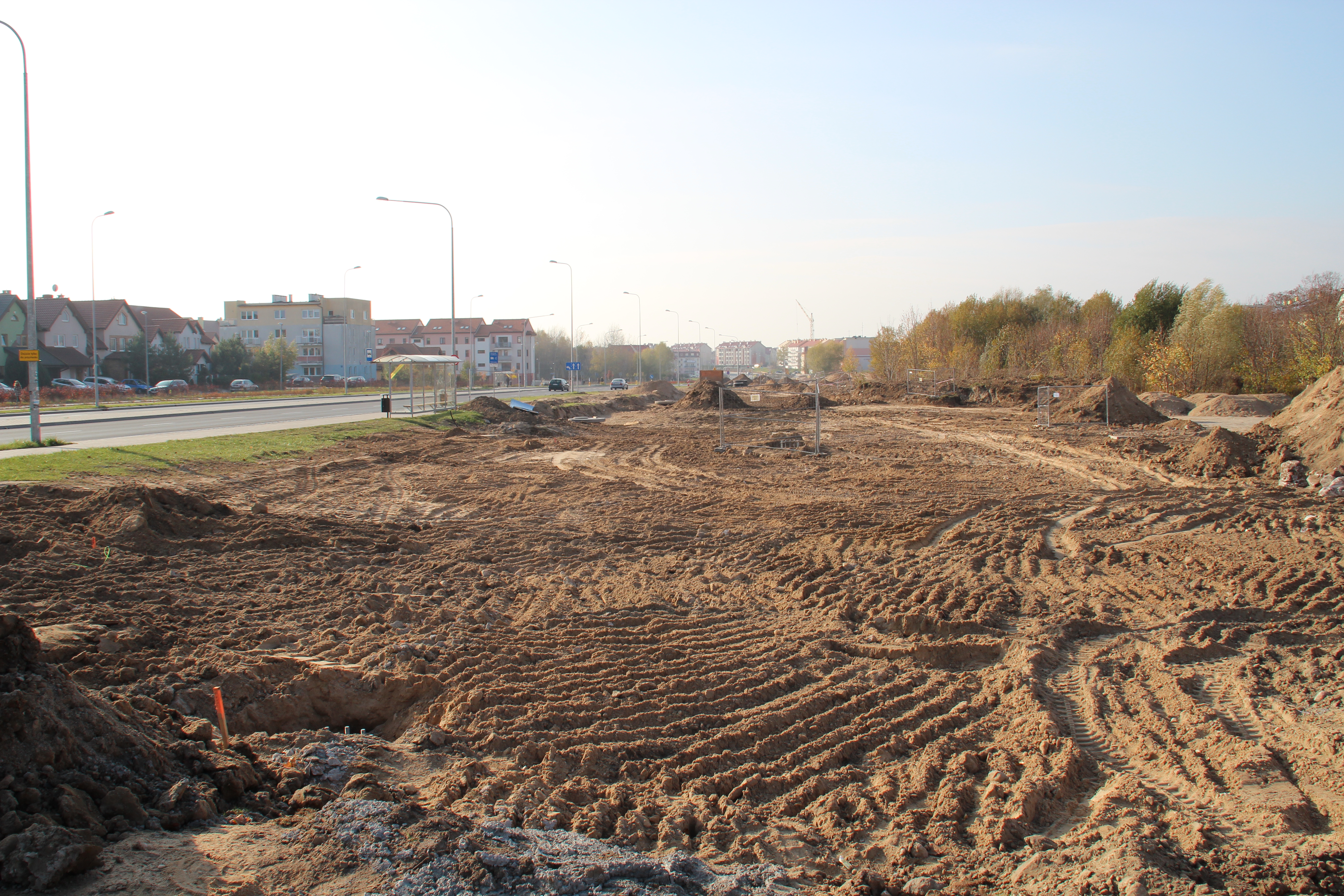 Miejsce przyszłego przystanku końcowego na Jarotach u zbiegu Witosa i Kanta (26 października 2014) © OlsztyńskieTramwaje.pl