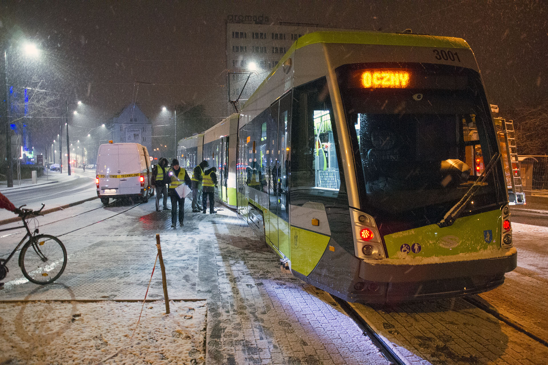 To jednak zaledwie przedsmak właściwego testu, na który przyjdzie pora jednej z najbliższych nocy – wtedy wyjedzie na ulicę już tramwaj. Nocą, bo pierwszy przejazd jest wyjątkowo ważny i wymaga spokoju, a nie dużego ruchu i spojrzeń ciekawskich. Podczas takiego debiutanckiego przejazdu także sprawdza się skrajnię, ale tym razem dynamiczną, czyli to, jak mieści się na torowisku tramwaj w ruchu. To ważne, bo zdarzały się już w Polsce przypadki, że o skrajni dynamicznej zapominano. W 2011 roku oddaną po remoncie pętlę przy Cmentarzu Grabiszyńskim we Wrocławiu trzeba było przebudować, bo tramwaje zahaczały na niej o słupy trakcyjne – po prostu projektanci zapomnieli, że na zakręcie tramwaj „zachodzi” i trzeba tam stawiać słupy w odległości nieco większej niż na prostym odcinku. Ulica Grabiszyńska we Wrocławiu jest pod tym względem pechowa, bo w tym roku wystąpił podobny problem na leżącej przy niej pętli Oporów. Po remoncie okazało się, że zbyt szerokie są perony przystankowe i na pętle nie wjadą najnowsze Pesy zakupione przez Wrocław. Także w Warszawie w tym roku trzeba było przebudować nowe, nieużywane jeszcze tory na skrzyżowaniu ulic Powstańców Śląskich i Radiowej, bo okazało się, że tramwaje mijające się na rozjeździe ocierają się o siebie lusterkami. Z takich powodów pierwszy test olsztyńskiego tramwaju może wyglądać nieco egzotycznie, niczym eksperymentalne przejazdy pociągów w XIX wieku. Może nie będzie przed tramwajem szedł herold z pochodnią i oznajmiał krzykiem, że się zbliża maszyna, ale Tramino będzie poruszało się bardzo wolno, a na zakrętach czy wjazdach na przystanki będzie się pewnie nawet zatrzymywać, by sprawdzić, czy nie zahacza o słup czy peron (szkoda byłoby taki piękny pojazd uszkodzić). Jeśli testowanie skrajni dynamicznej wypadnie pomyślnie i nie będą konieczne żadne poprawki, szybko powinny zacząć się jazdy testowe, by motorniczy mogli wyjeździć swoje obowiązkowe godziny, mieszkańcy przyzwyczajali się do obecności tramwajów na ulicach, a specjaliści z firmy Sprint mogli wyregulować odpowiednio system sterowania ruchem (ITS).