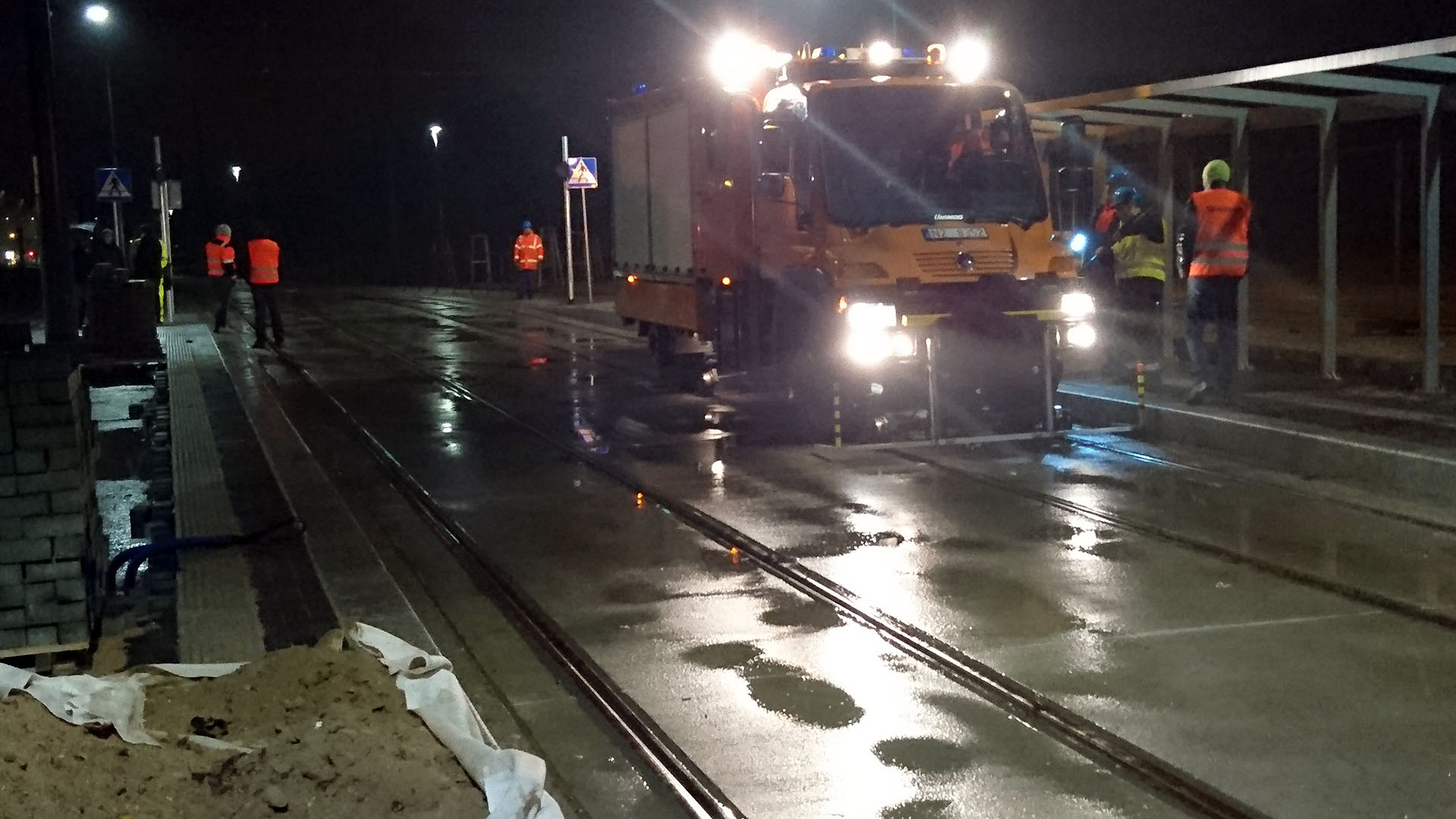 W części olsztyńskiej sieci tramwajowej popłynął już prąd, rozpoczęło się też oczyszczanie szyn, żeby mogły po nich pojechać pierwsze pojazdy – najpierw techniczne, a potem już same tramwaje.