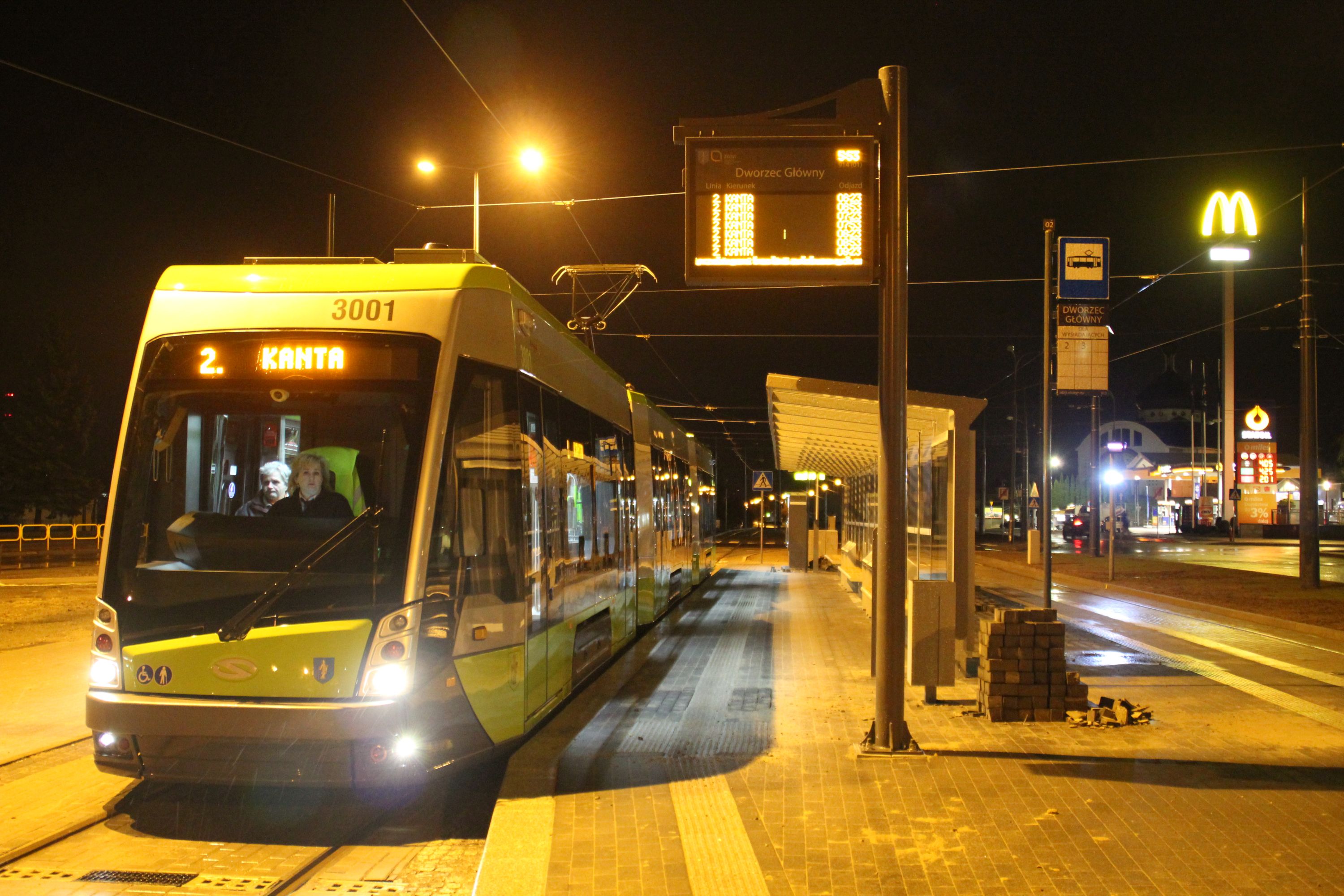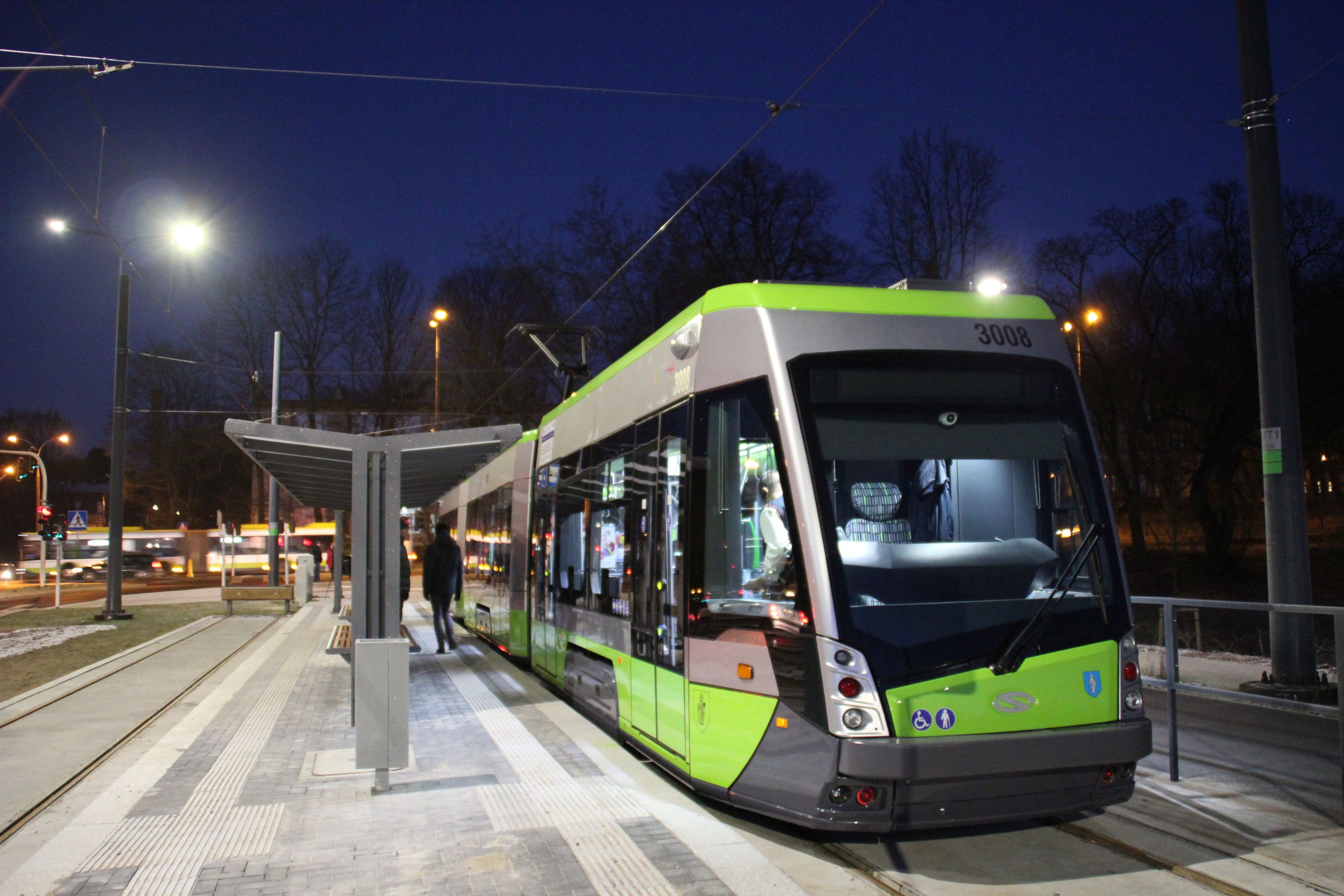 Z kronikarskiego obowiązku należy odnotować starty linii 2 i 3, które nastąpiły po Bożym Narodzeniu. W niedzielę 27 grudnia z Dworca Głównego w pierwszy kurs do końcowego przystanku Kanta wyruszyła „dwójka”. Zgodnie z rozkładem, punktualnie o 4:53 Solaris Tramino o numerze taborowym #3001 wystartował z placu Konstytucji 3 Maja. Pasażerów było zaledwie czterech, zresztą wszyscy byli miłośnikami komunikacji miejskiej, którzy chcieli wziąć udział w historycznym przejeździe (w tym i my). Mimo bardzo wczesnej pory sygnalizacja świetlna dała się we znaki, bo pierwsza „dwójka” pokonała swoją trasę w 26 minut, docierając do krańcówki Kanta o 5:19. Przyczyniła się do tego też konieczność ręcznego przestawiania zwrotnicy przed wjazdem na końcowy przystanek. Z powrotem „dwójka” zabrała już kilku zwykłych pasażerów, także jadących z walizkami na dworzec, co dowodzi, że olsztyniacy uważnie śledzą uruchamianie tramwajów i korzystają z nich od pierwszej możliwej chwili. Pierwszy kurs linii 2 z Kanta do Dworca Głównego zajął 21 minut, czyli o trzy minuty dłużej niż w rozkładzie grudniowym, ale już zgodnie z wydłużonym czasem przejazdu obowiązującym od stycznia.