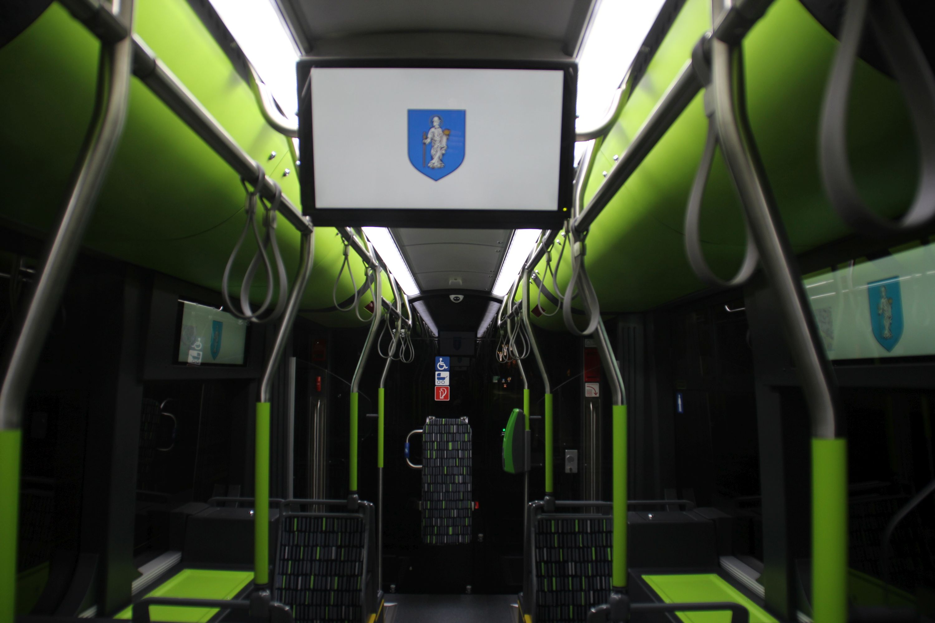 Choć święty Jakub, patron m.in. pielgrzymów i walk z islamem, to zdecydowanie przyjazna postać, to jednak jego pojawienie się na tablicach informacji pasażerskiej w olsztyńskich Tramino, zwiastuje tylko kłopoty, czyli brak informacji o trasie. Na zdjęciu: Wnętrze Solarisa Tramino Olsztyn S111O #3009 (27 grudnia 2015) © OlsztyńskieTramwaje.pl