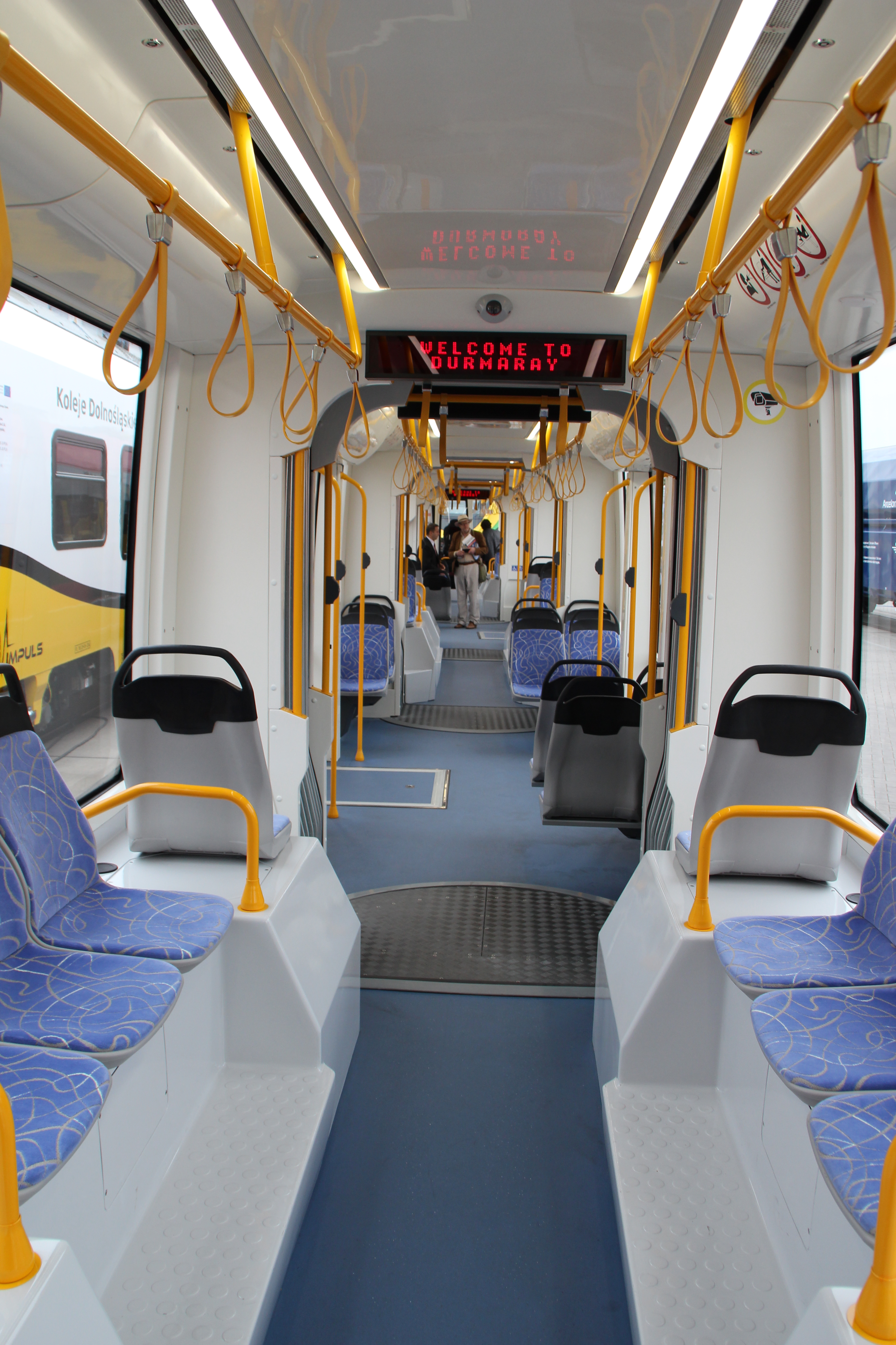 Wnętrze tramwaju wysokoperonowego (Stadtbahnu) własnej marki wyprodukowanego przez stambulskiego przewoźnika İstanbul Ulaşım © OlsztyńskieTramwaje.pl