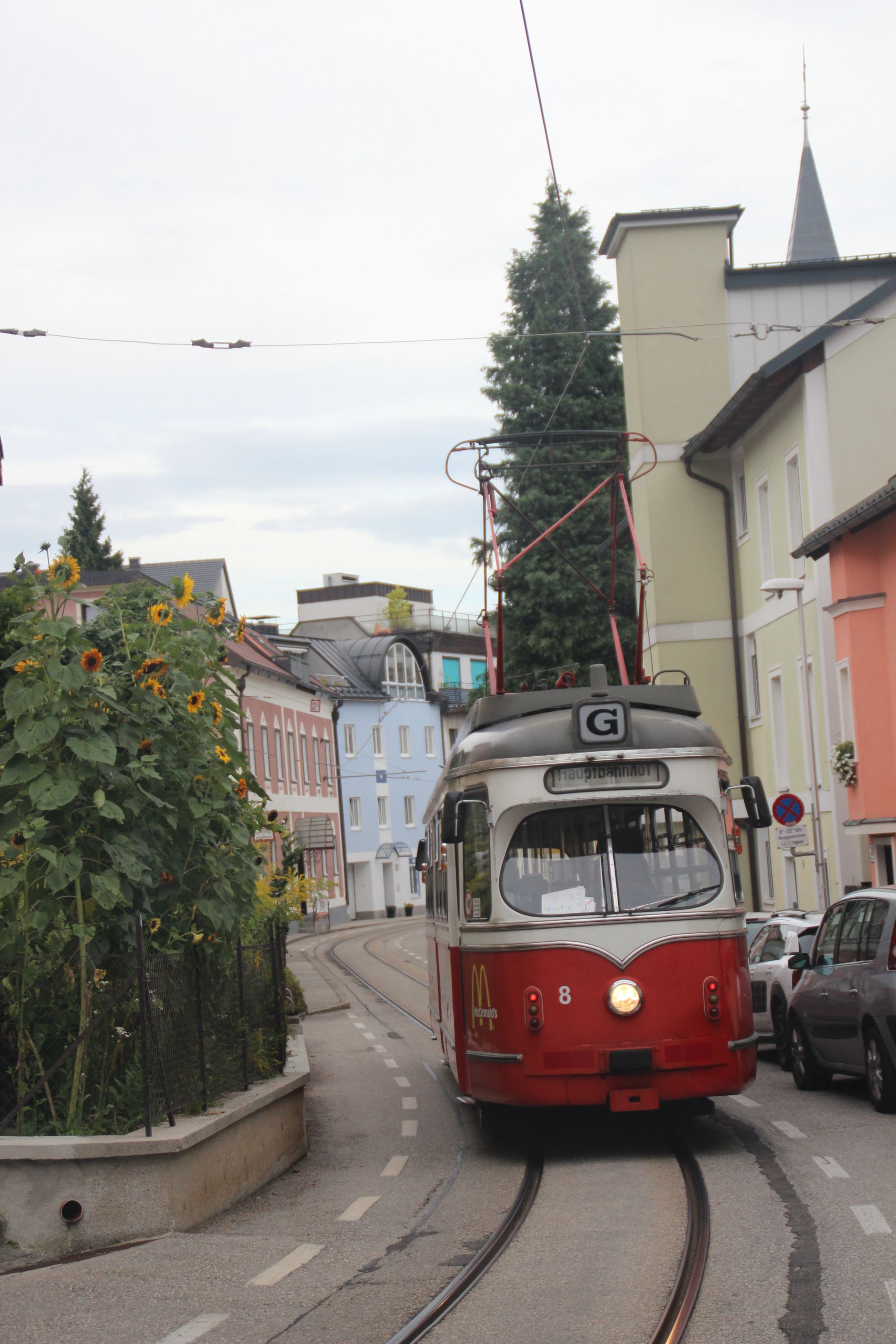 Tramwaj pojedzie i najwęższą ulicą, ale ruch samochodowy musi być tam niewielki. Jeśli torowisko znajduje się w jezdni i tworzą się tam korki, to odbieramy tramwajowi jego przewagę i atrakcyjność. Na zdjęciu: Lohner T4 #8 na Herakhstraße w Gmunden © Olsztyńskie Tramwaje.pl