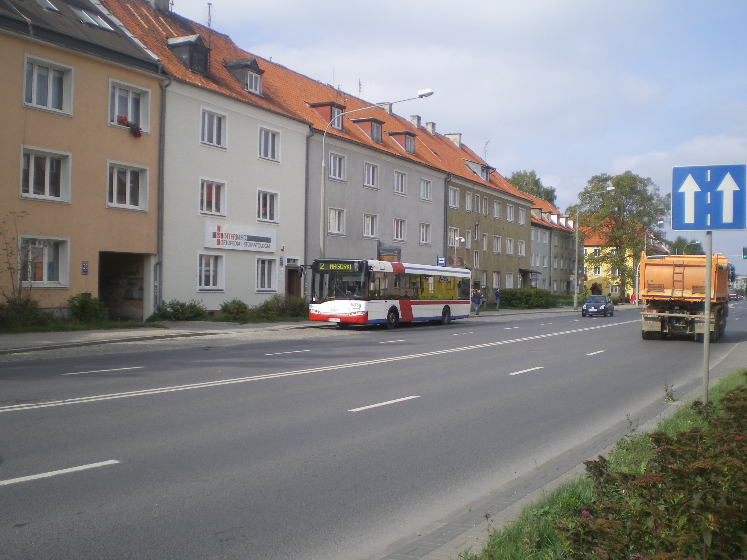 Niech ktoś powie, że na tej autostradzie nie ma miejsca na tramwaj… Na zdjęciu: Solaris Urbino 12 III #933 na linii 2 na przystanku Limanowskiego (14 września 2015) © Olsztyńskie Tramwaje.pl