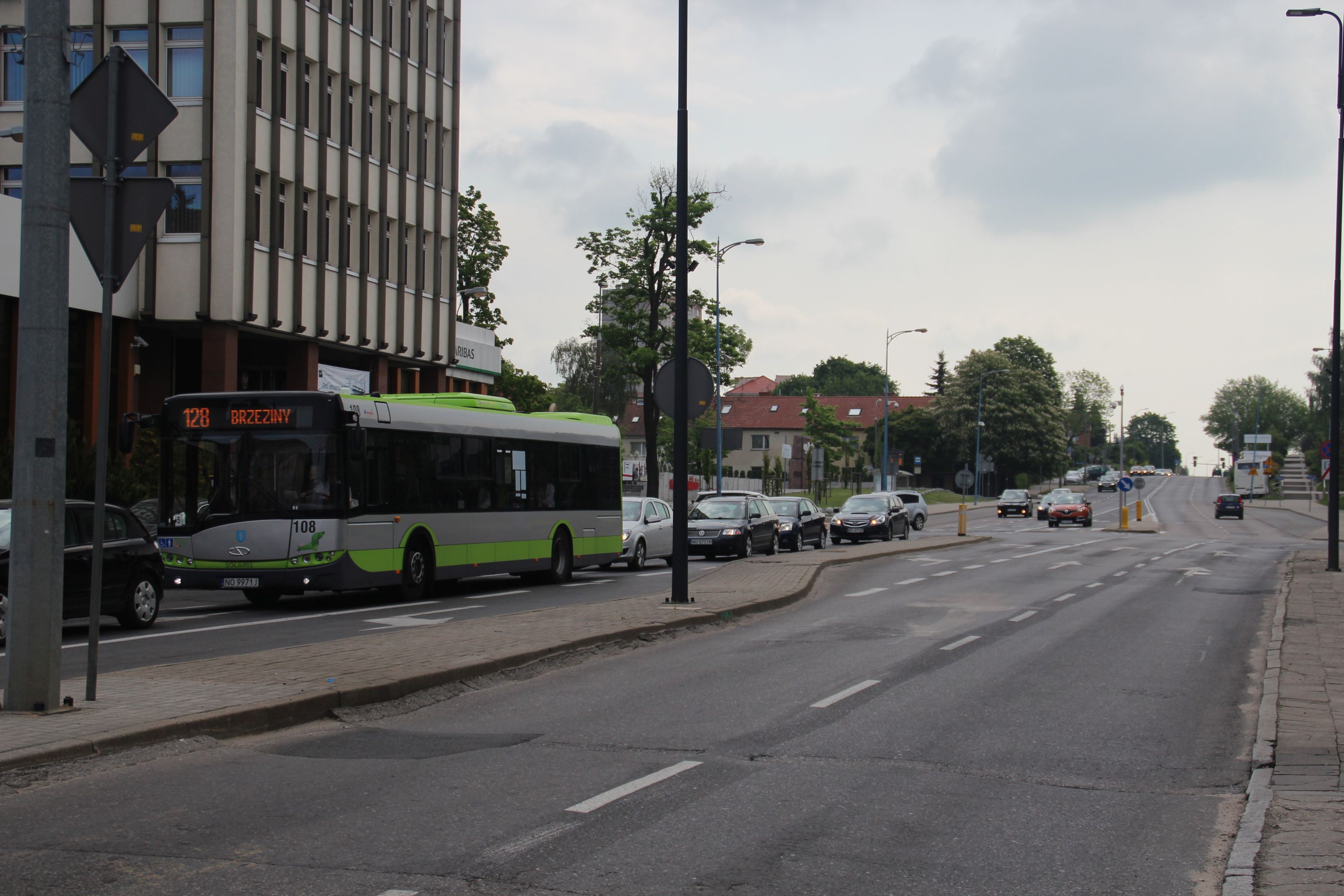 Solaris Urbino 12 III #108 na linii 128 przed skrzyżowaniem alei Piłsudskiego z Kościuszki (21 maja 2016) © OlsztyńskieTramwaje.pl