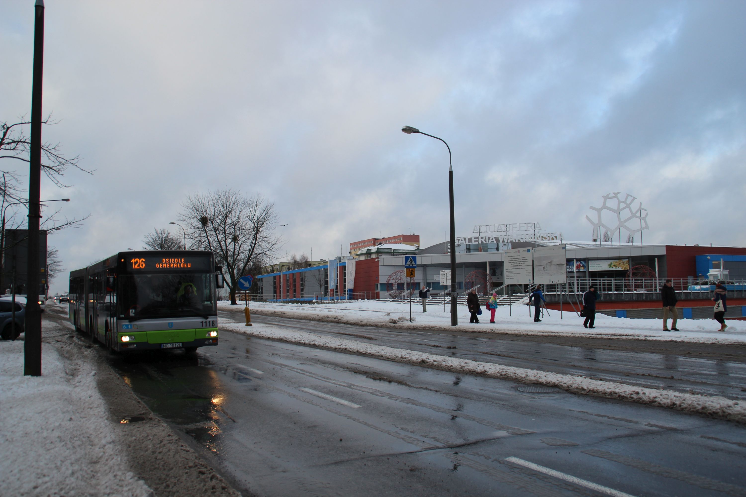 MAN A23 #1118 na linii 128 odjeżdża z przystanku Stadion Stomil (4 stycznia 2017) © OlsztyńskieTramwaje.pl