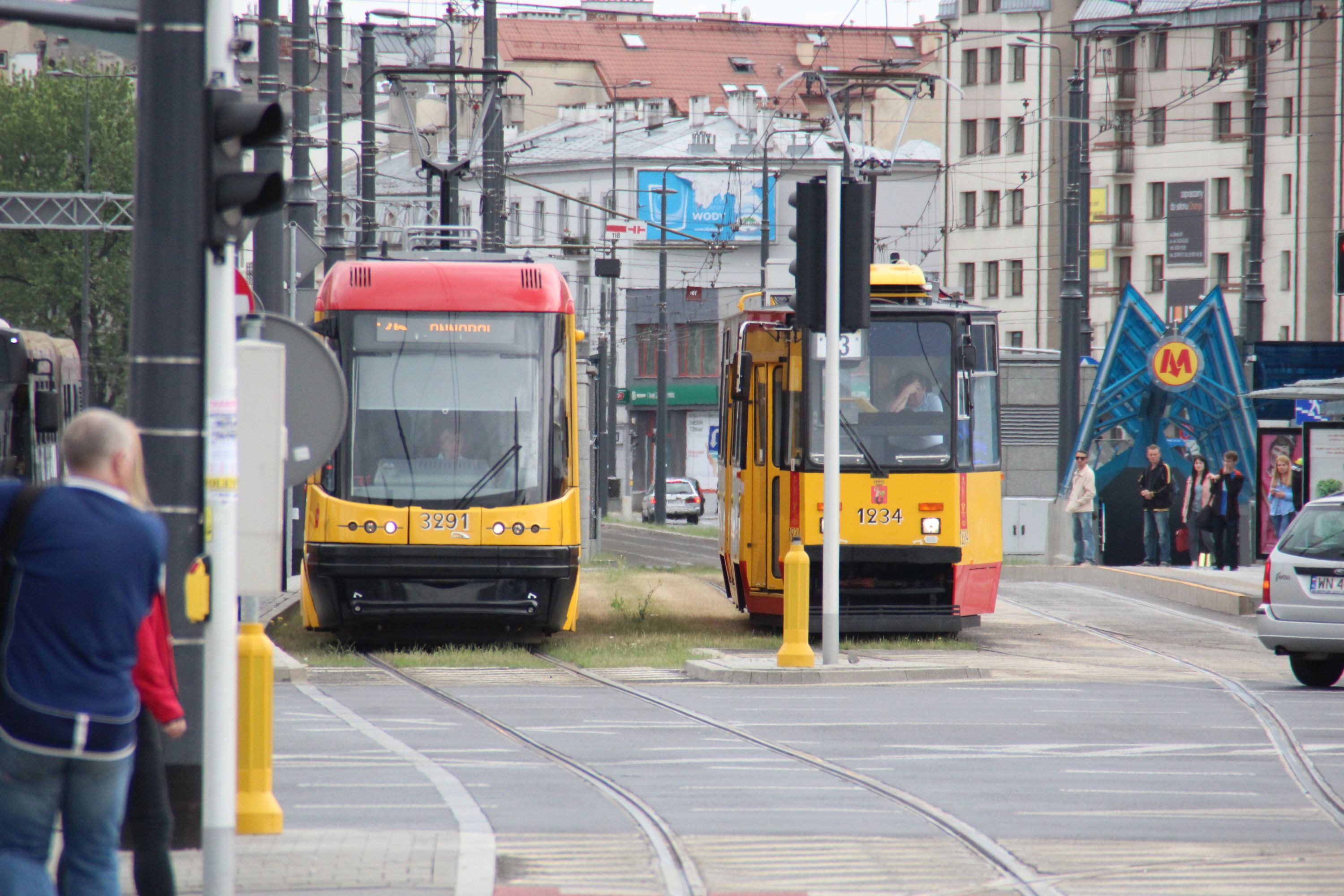 Osobne tory dla różnych kierunków na ulicy Targowej w Warszawie, przy Dworcu Wileńskim © OlsztyńskieTramwaje.pl