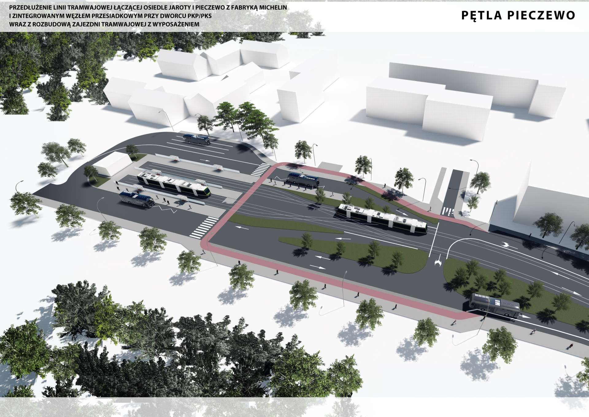 Wizualizacja krańcówki tramwajowo-autobusowej Pieczewo (wariant 2)