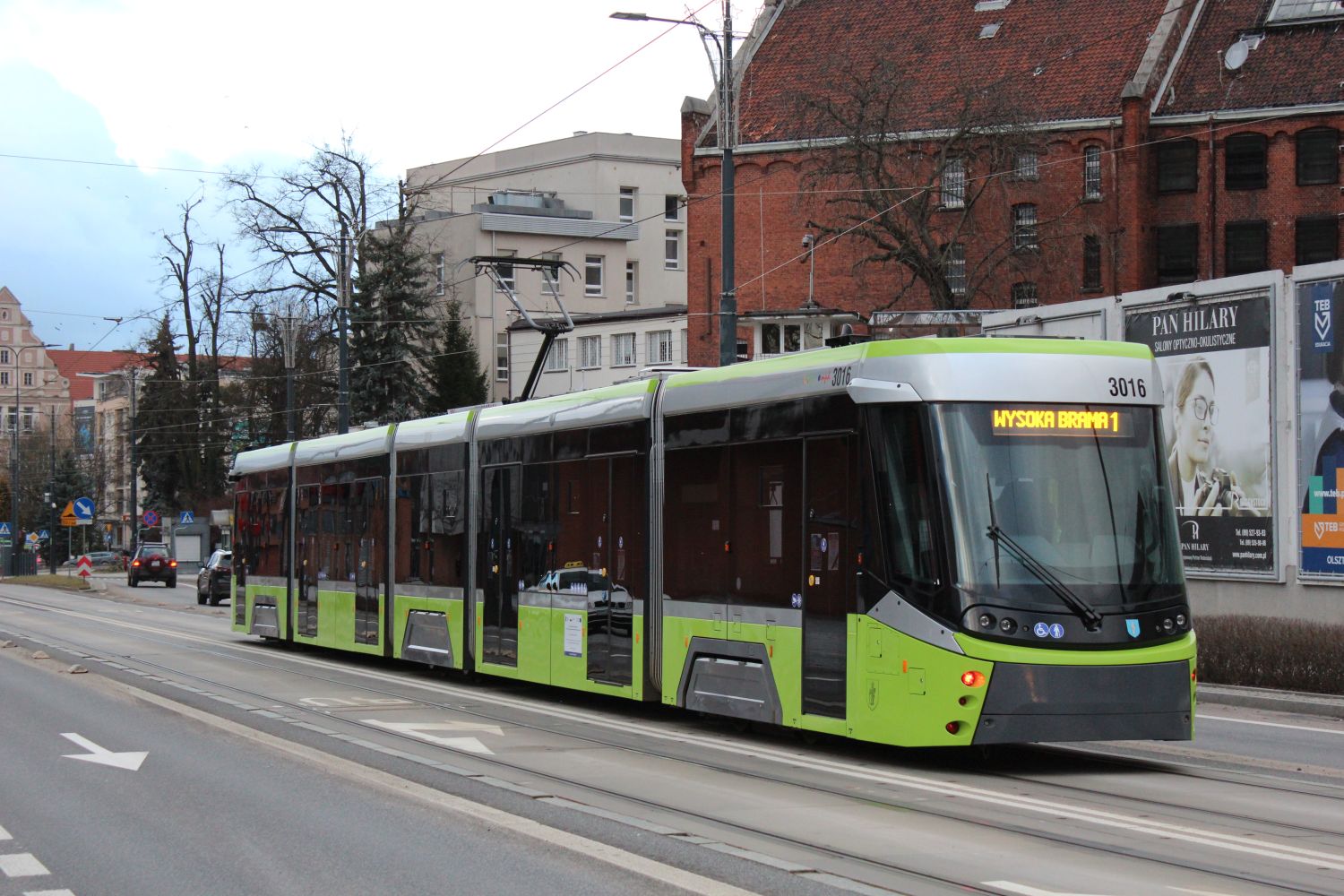 Durmazlar Panorama Olsztyn DRP5H05 #3016 na linii 1 w alei Piłsudskiego (7 lutego 2022) © OlsztyńskieTramwaje.pl