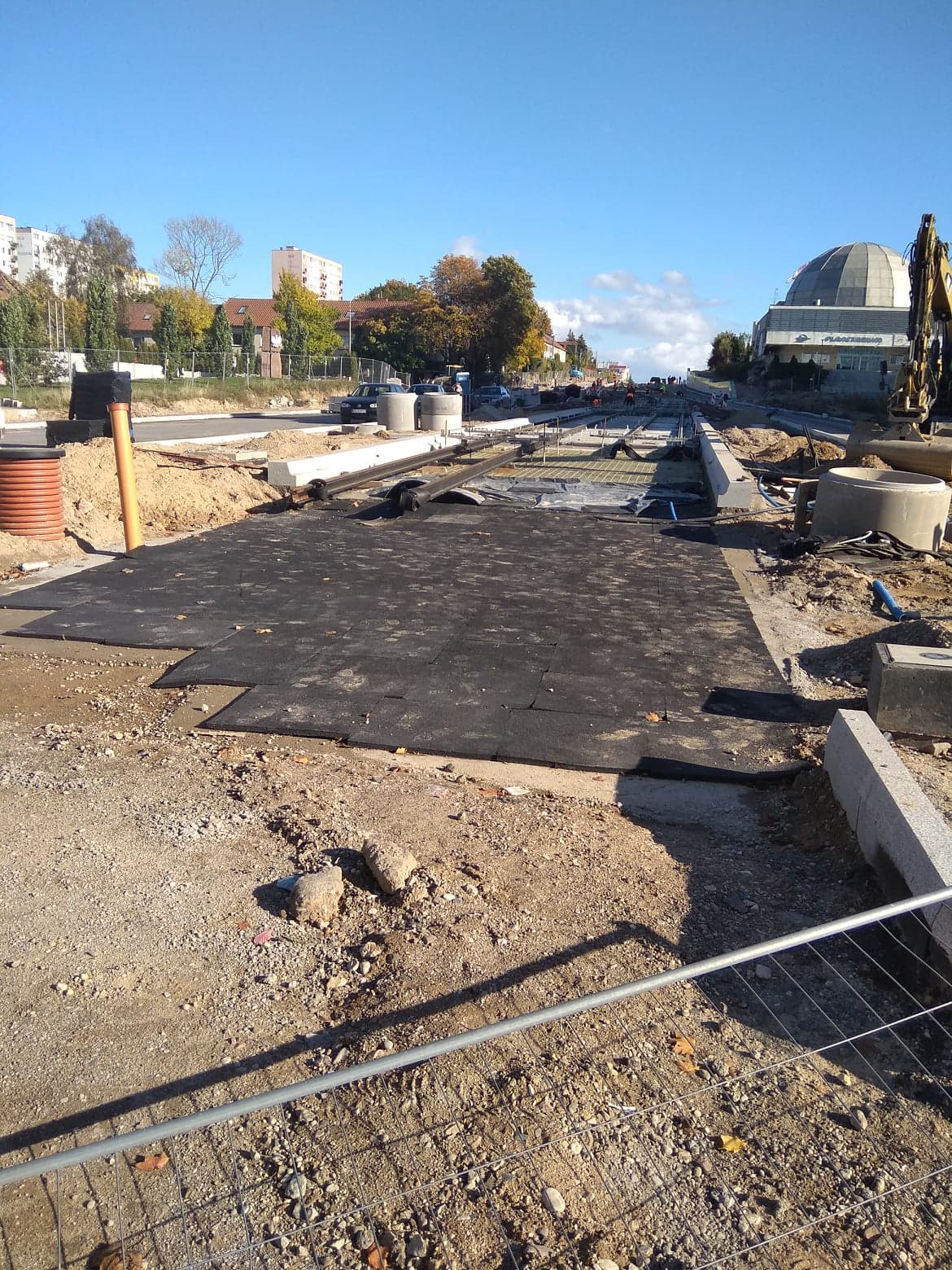 Budowa linii tramwajowej w alei Piłsudskiego, w pobliżu przystanku Planetarium (6 października 2022) © OlsztyńskieTramwaje.pl