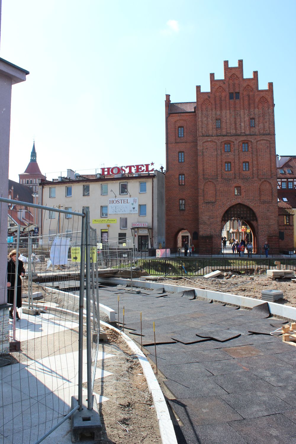 Budowa linii tramwajowej na skrzyżowaniu ulic 11 Listopada, Skłodowskiej-Curie, Nowowiejskiego i Staromiejskiej oraz placu Jedności Słowiańskiej (10 kwietnia 2023) © OlsztyńskieTramwaje.pl