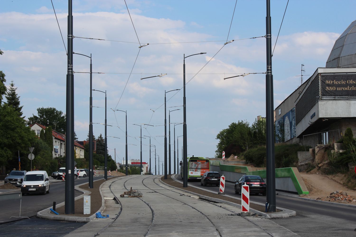 Budowa linii tramwajowej w alei Piłsudskiego, w pobliżu skrzyżowania z ulicą Kościńskiego (5 lipca 2023) © OlsztyńskieTramwaje.pl