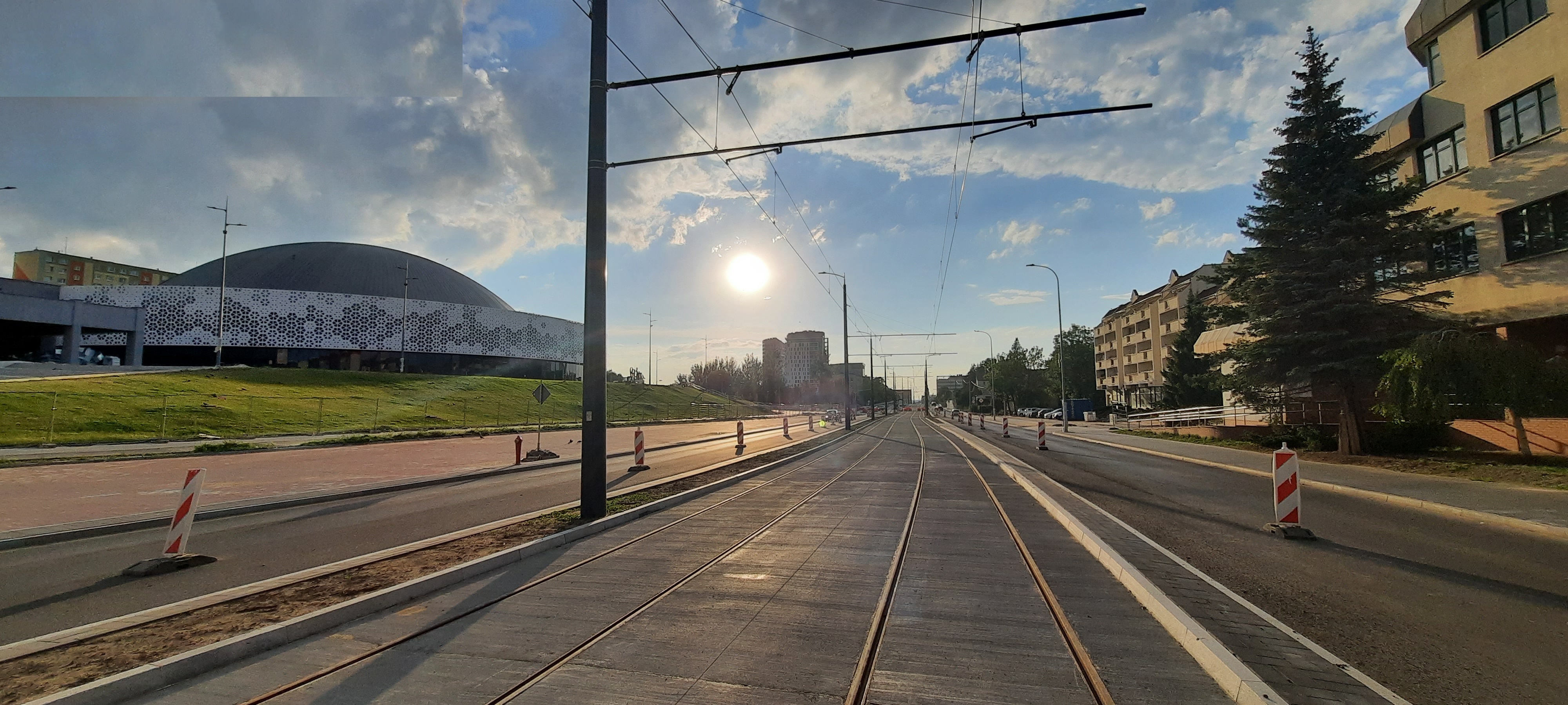 Budowa linii tramwajowej w alei Piłsudskiego, na wysokości hali Urania (13 sierpnia 2023) © OlsztyńskieTramwaje.pl