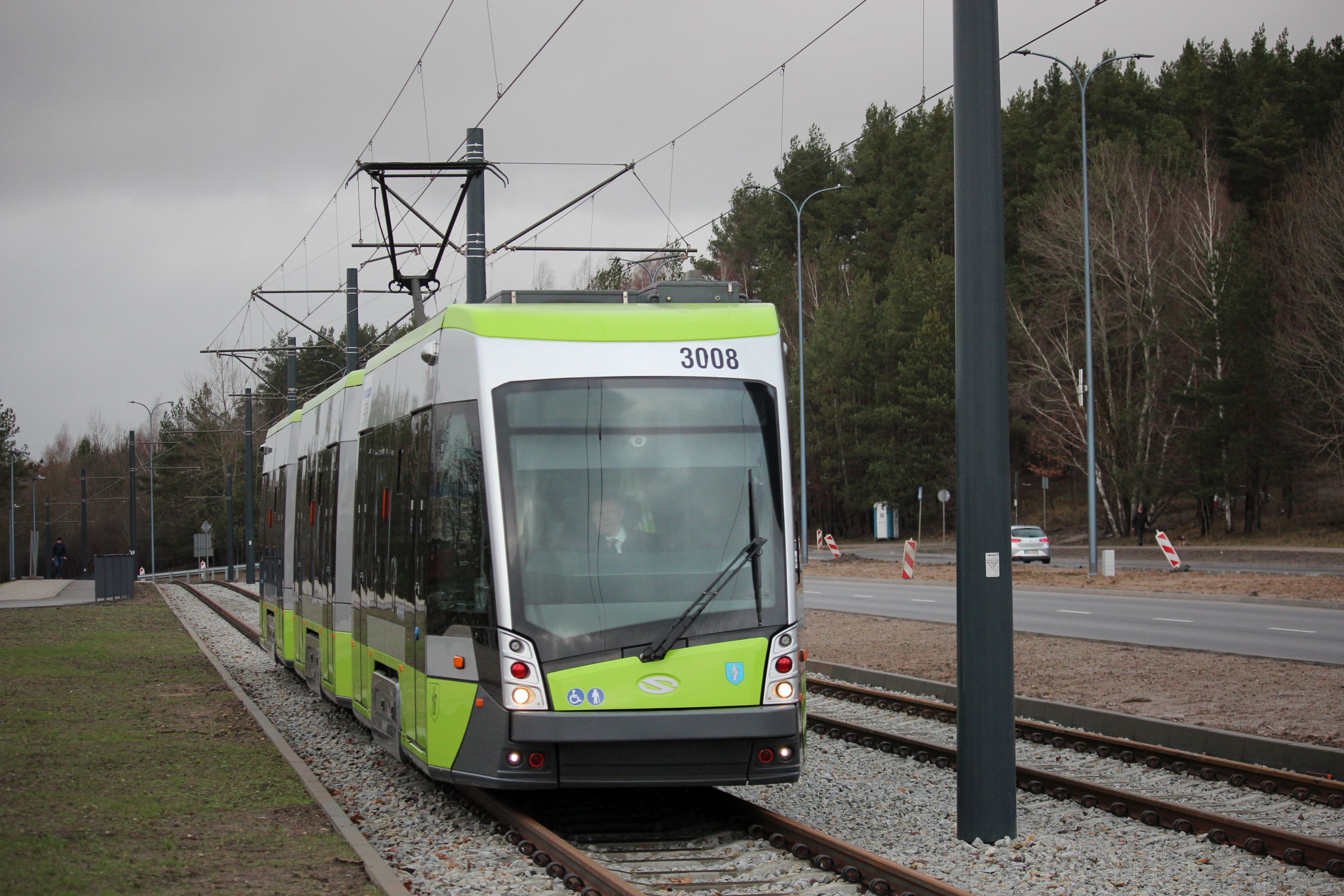 Solaris Tramino Olsztyn S111O #3008 na linii 4 zbliża się do przystanku Boenigka w kursie w pierwszym dniu funkcjonowania trasy tramwajowej na Pieczewo (30 grudnia 2023) © OlsztyńskieTramwaje.pl