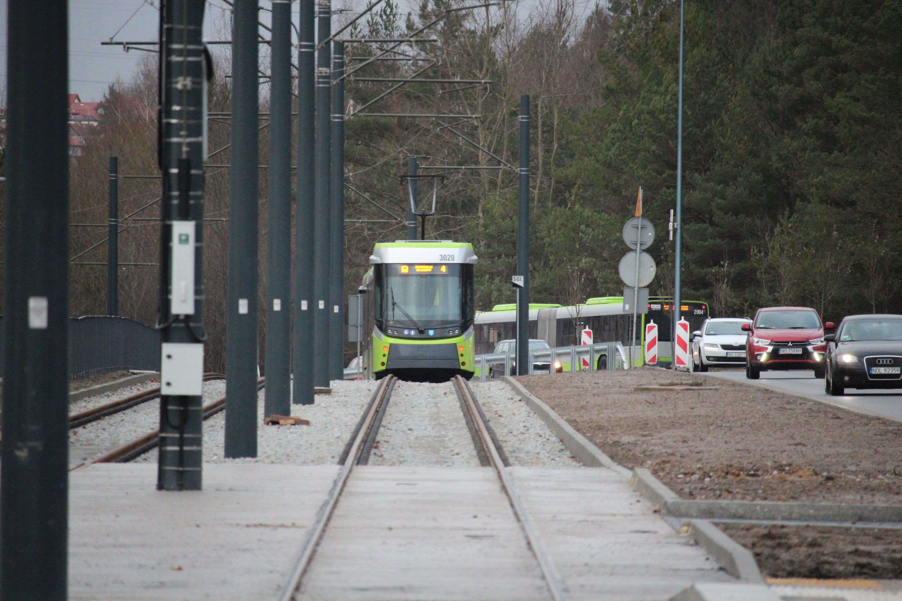 Durmazlar Panorama Olsztyn DRP5H05 #3020 na linii 4 odjeżdża z przystanku Boenigka w pierwszym dniu funkcjonowania trasy tramwajowej na Pieczewo (30 grudnia 2023) © OlsztyńskieTramwaje.pl