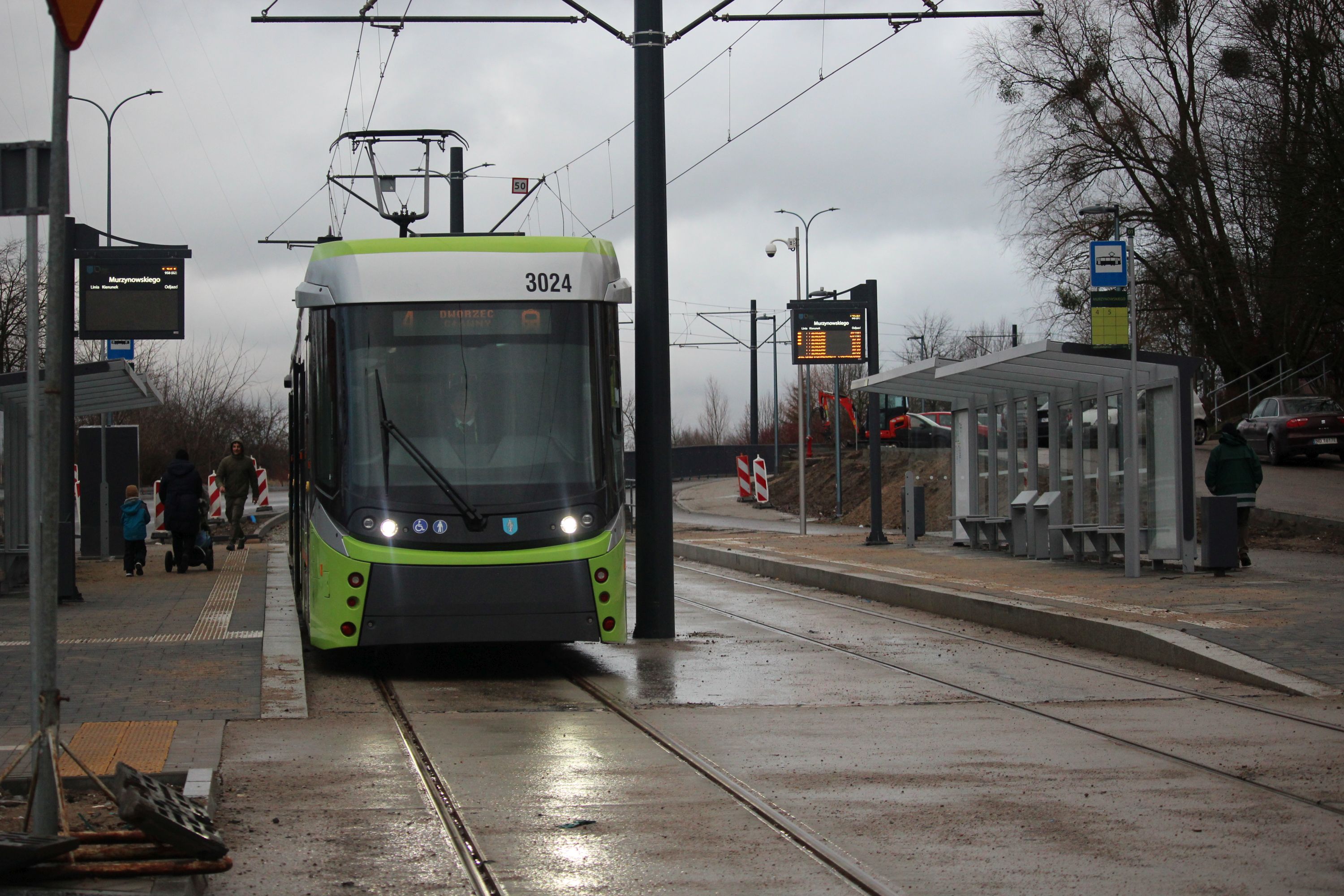 Durmazlar Panorama Olsztyn DRP5H05 #3024 na linii 4 na przystanku Murzynowskiego w pierwszym dniu funkcjonowania trasy tramwajowej na Pieczewo (30 grudnia 2023) © OlsztyńskieTramwaje.pl