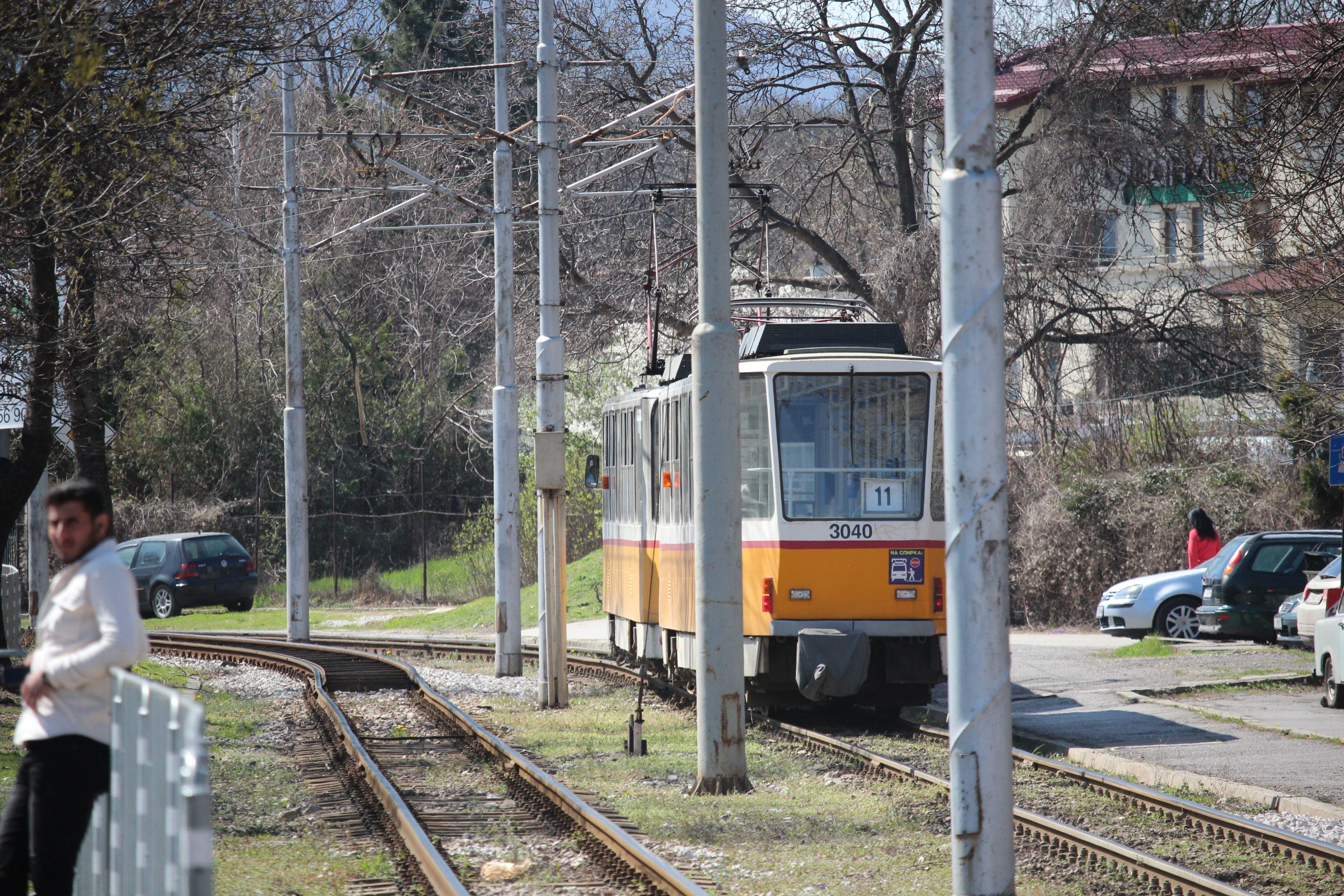 Skład Tatr T6 #3039 i #3040 na linii 11 odjeżdża z przystanku Metrostancija Owcza kupel (Метростанция Овча купел) w Sofii (24 marca 2024) © OlsztyńskieTramwaje.pl