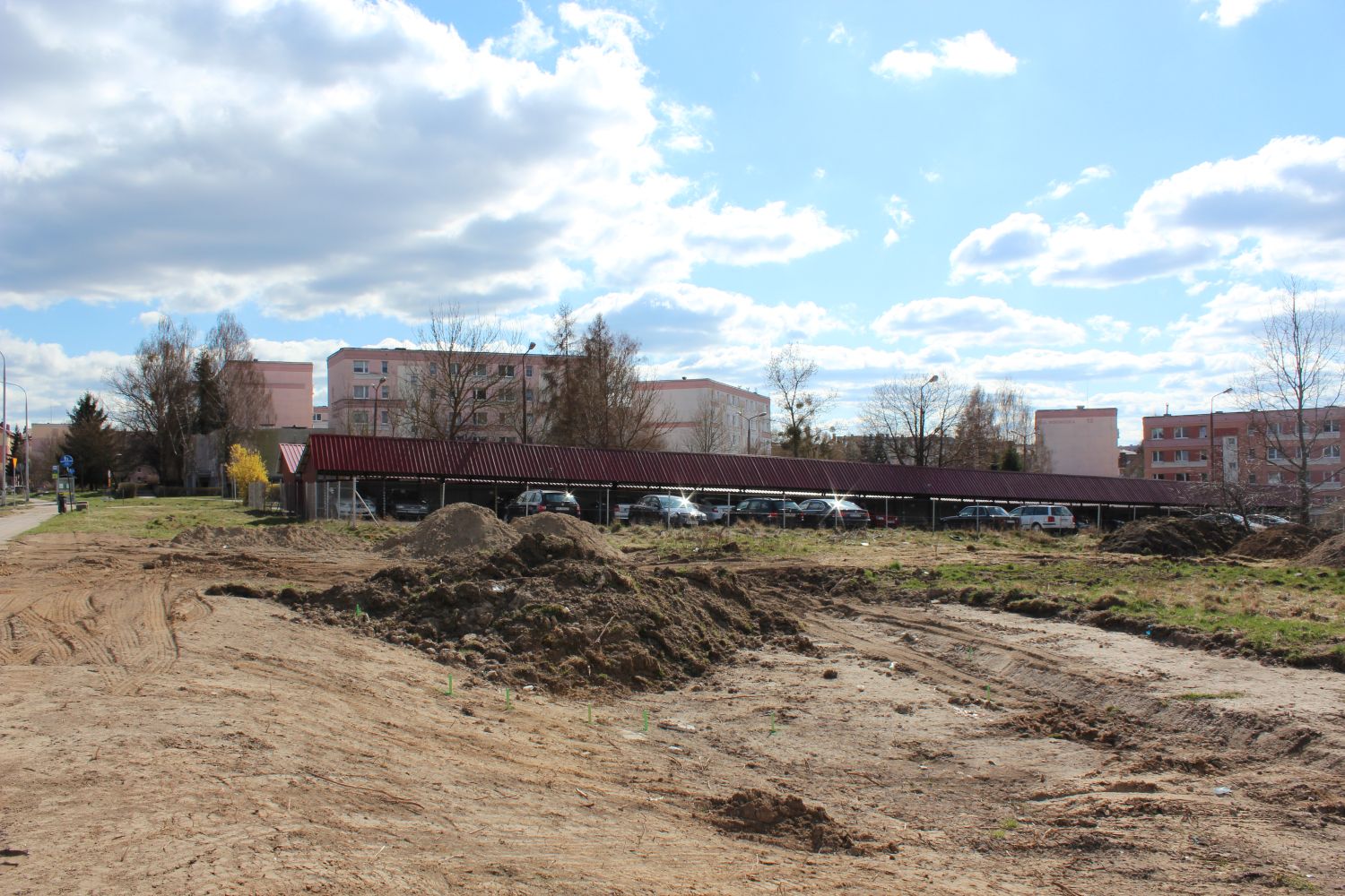 Miejsce przyszłej podstacji trakcyjnej przy ulicy Krasickiego, w pobliżu przystanku Boenigka (16 kwietnia 2022) © OlsztyńskieTramwaje.pl