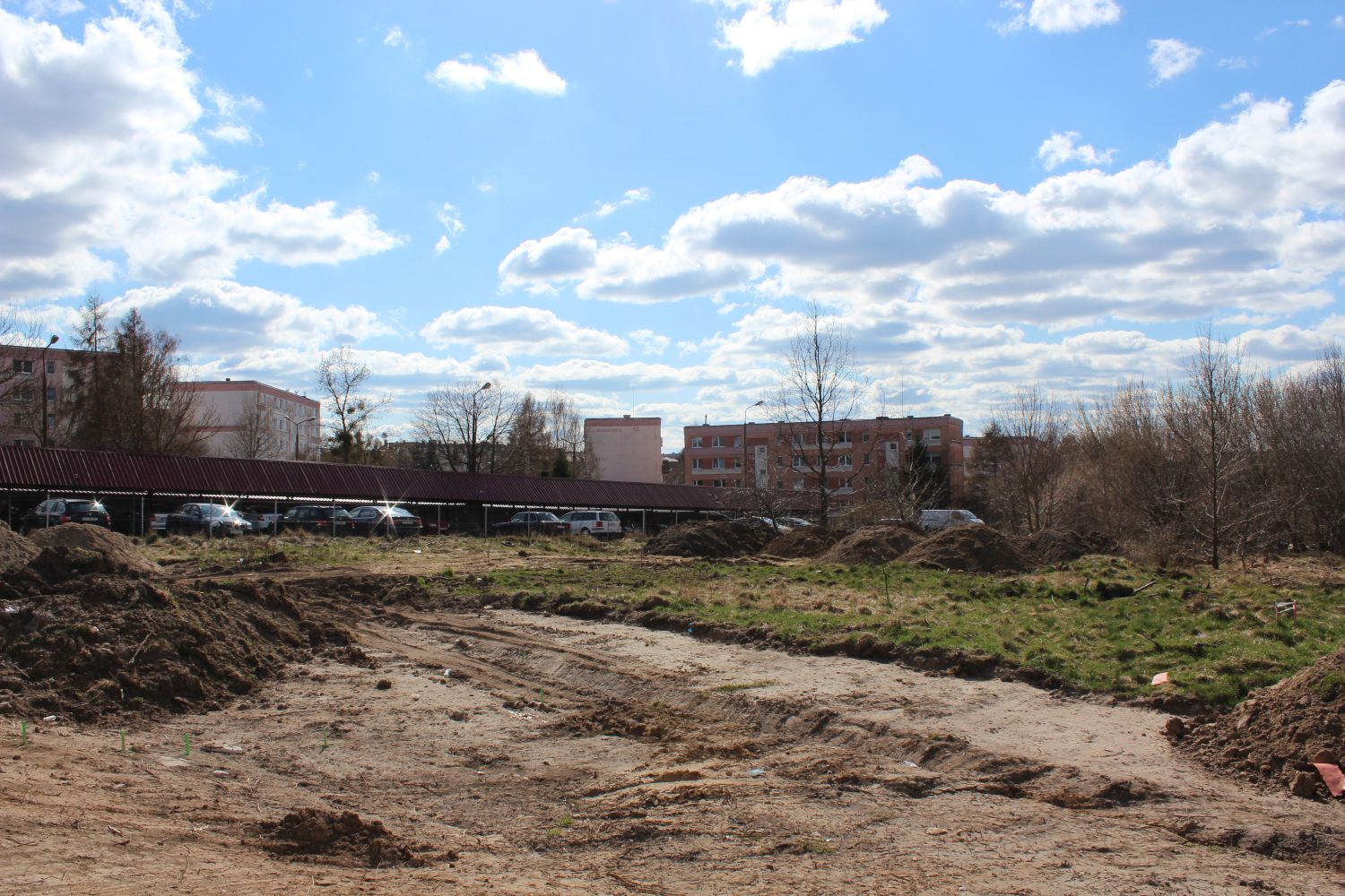 Miejsce przyszłej podstacji trakcyjnej przy ulicy Krasickiego, w pobliżu przystanku Boenigka (16 kwietnia 2022) © OlsztyńskieTramwaje.pl