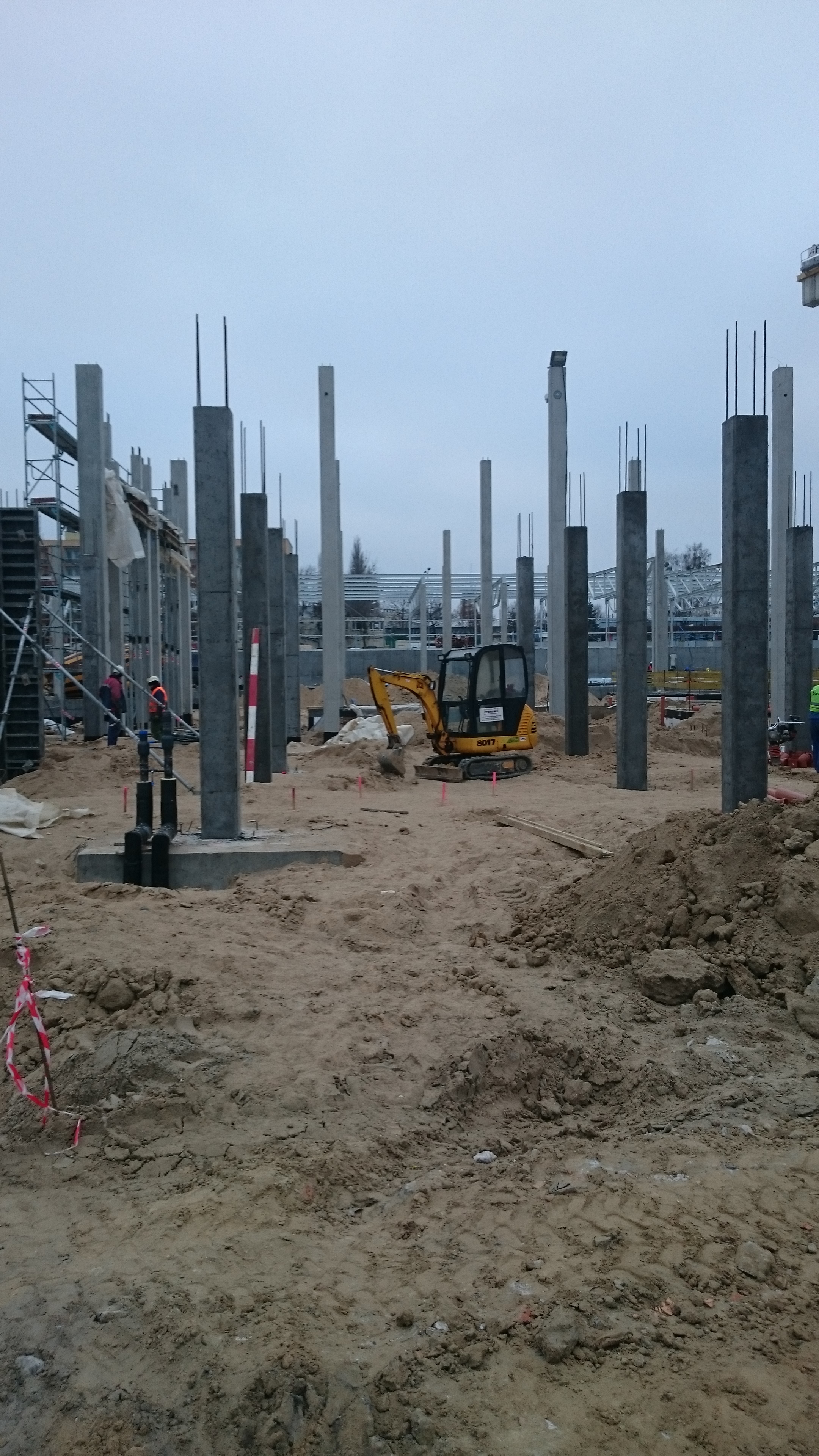 Budowa zajezdni tramwajowej przy ulicy Towarowej i Kołobrzeskiej (1 grudnia 2014) Fot. Kenez
