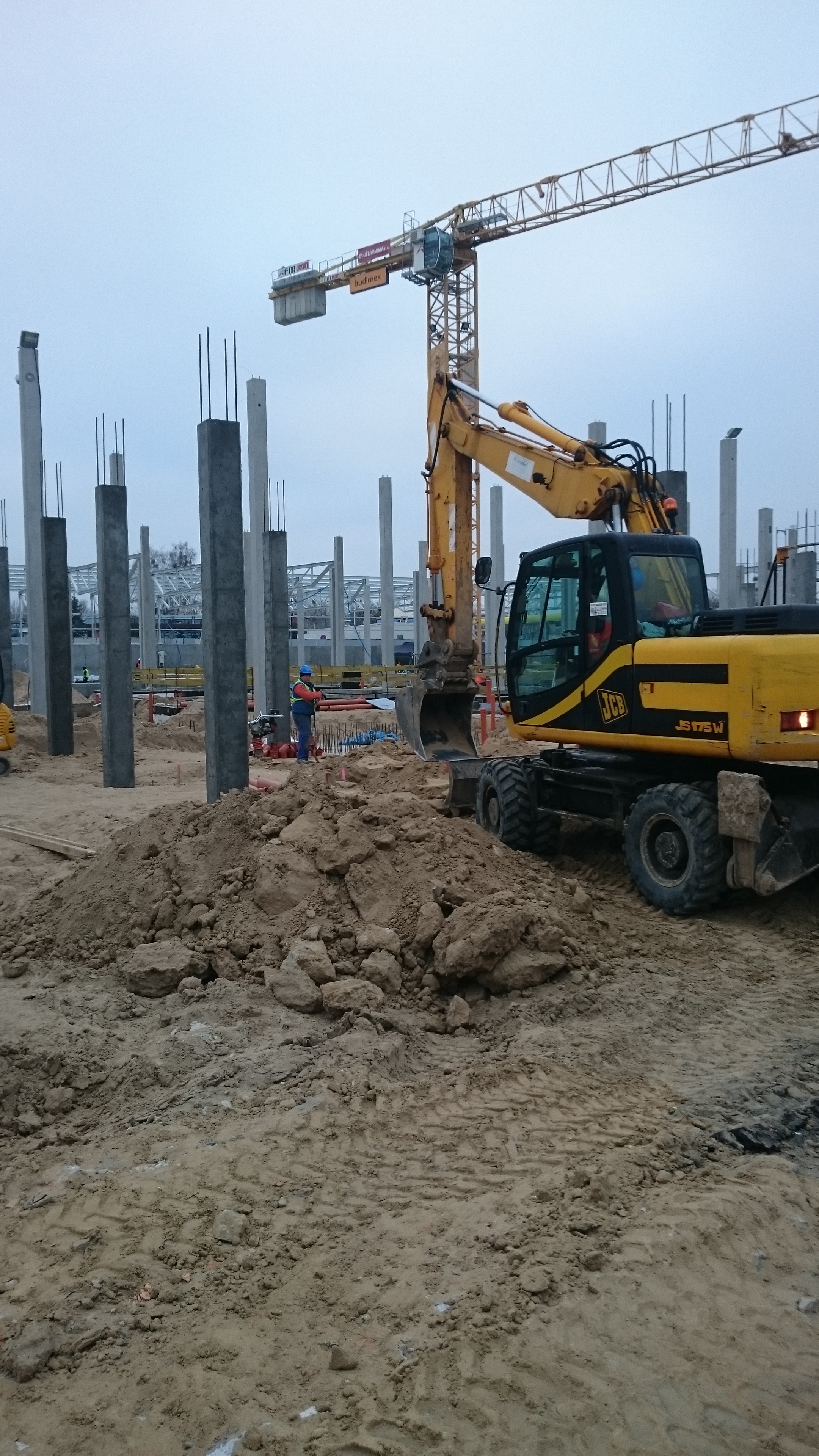 Budowa zajezdni tramwajowej przy ulicy Towarowej i Kołobrzeskiej (1 grudnia 2014) Fot. Kenez