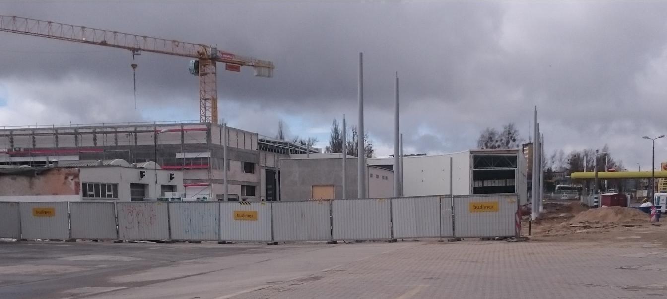 Budowa zajezdni tramwajowej przy ulicy Towarowej i Kołobrzeskiej (12 kwietnia 2015) Fot. Kenez