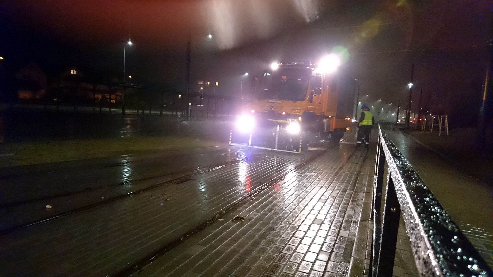 Samochód sieciowy Unimog na przystanku końcowym Kanta (16 listopada 2015) Fot. Paweł Bukowski