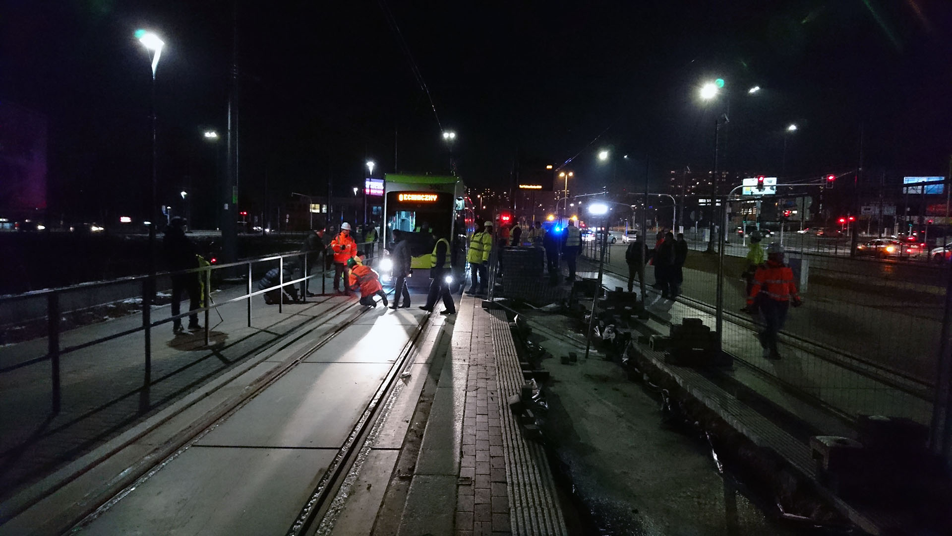 Solaris Tramino Olsztyn S111O #3001 na przystanku Galeria Warmińska podczas czwartego przejazdu próbnego (24 listopada 2015) Fot. Paweł Bukowski