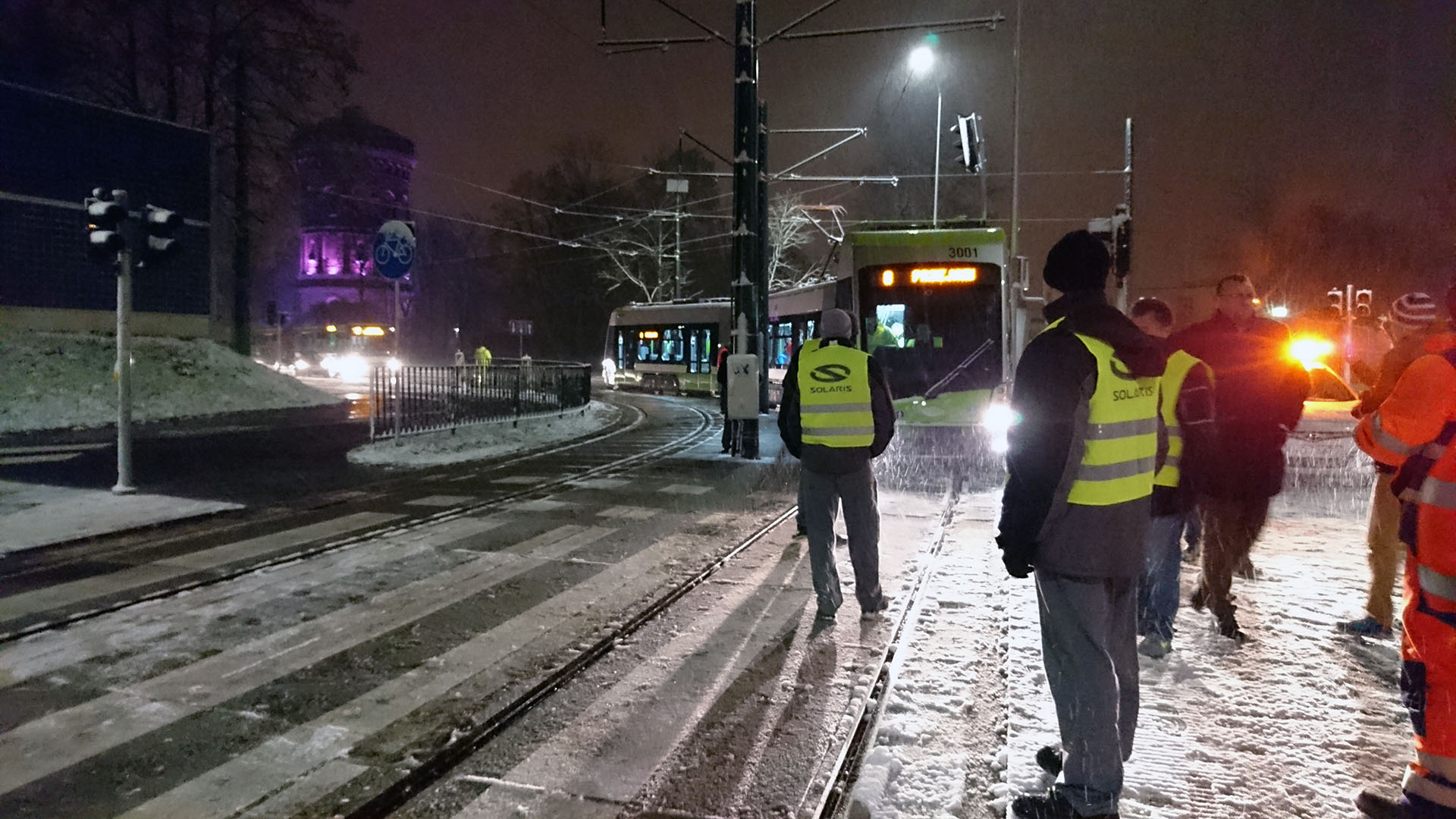 Solaris Tramino Olsztyn S111O #3001 wjeżdża na przystanek Szpital Wojewódzki podczas trzeciego przejazdu próbnego (23 listopada 2015) Fot. Paweł Bukowski