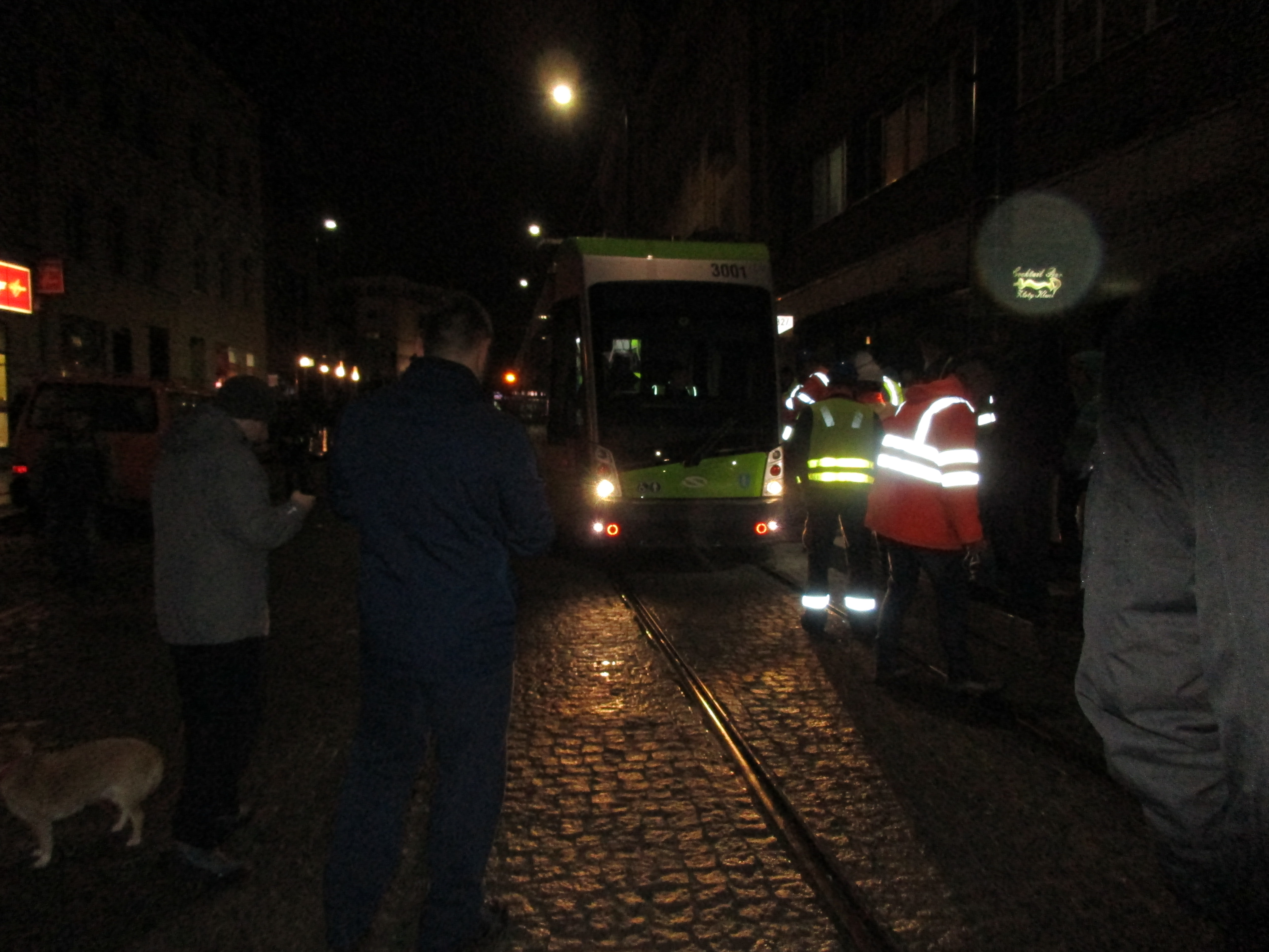 Solaris Tramino Olsztyn S111O #3001 wjeżdża na przystanek końcowy Wysoka Brama podczas drugiego przejazdu próbnego (20 listopada 2015) © OlsztyńskieTramwaje.pl