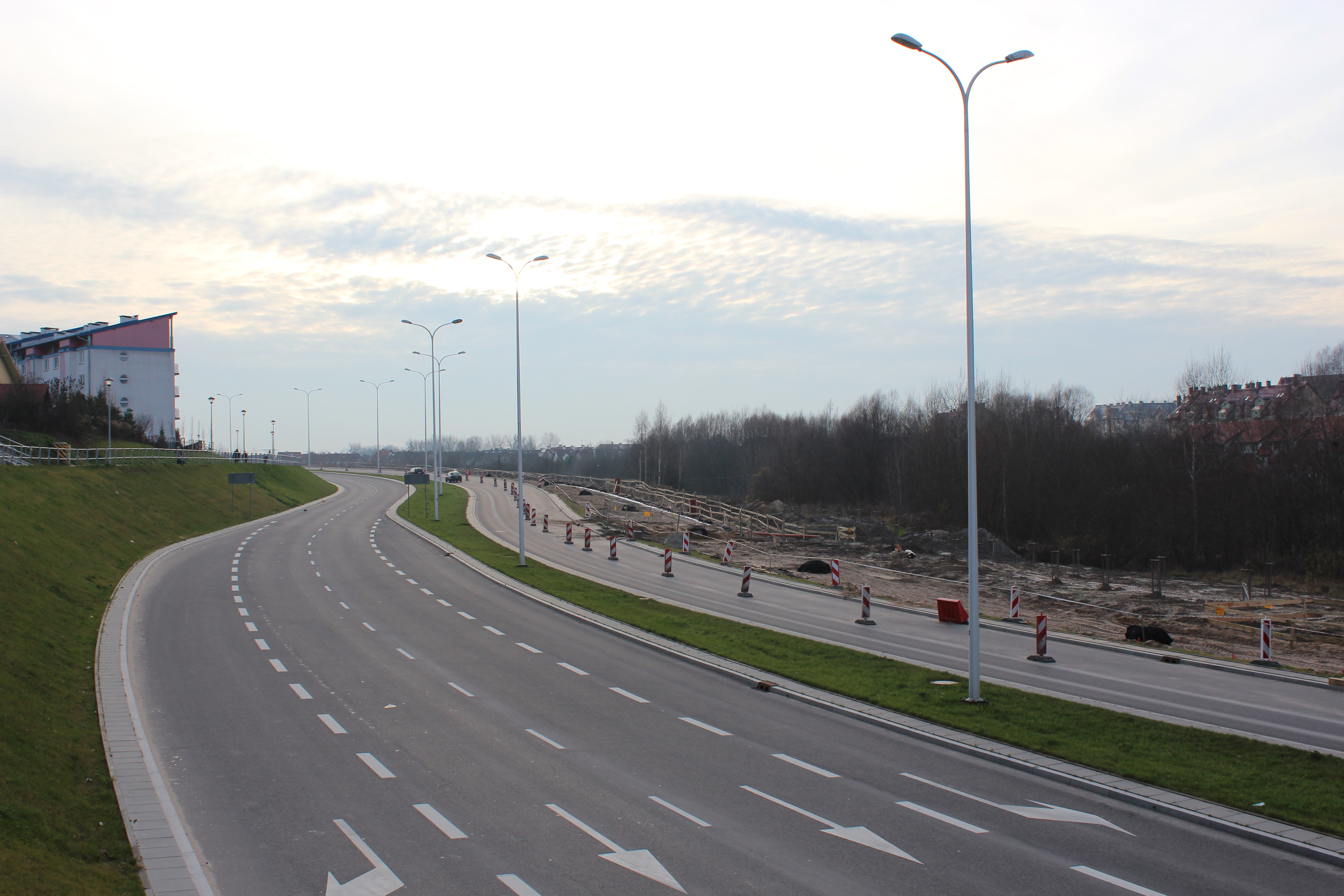 Budowa linii tramwajowej przy ulicy Płoskiego (2 grudnia 2012) – widok z okolic ulicy Kujawskiej © OlsztyńskieTramwaje.pl