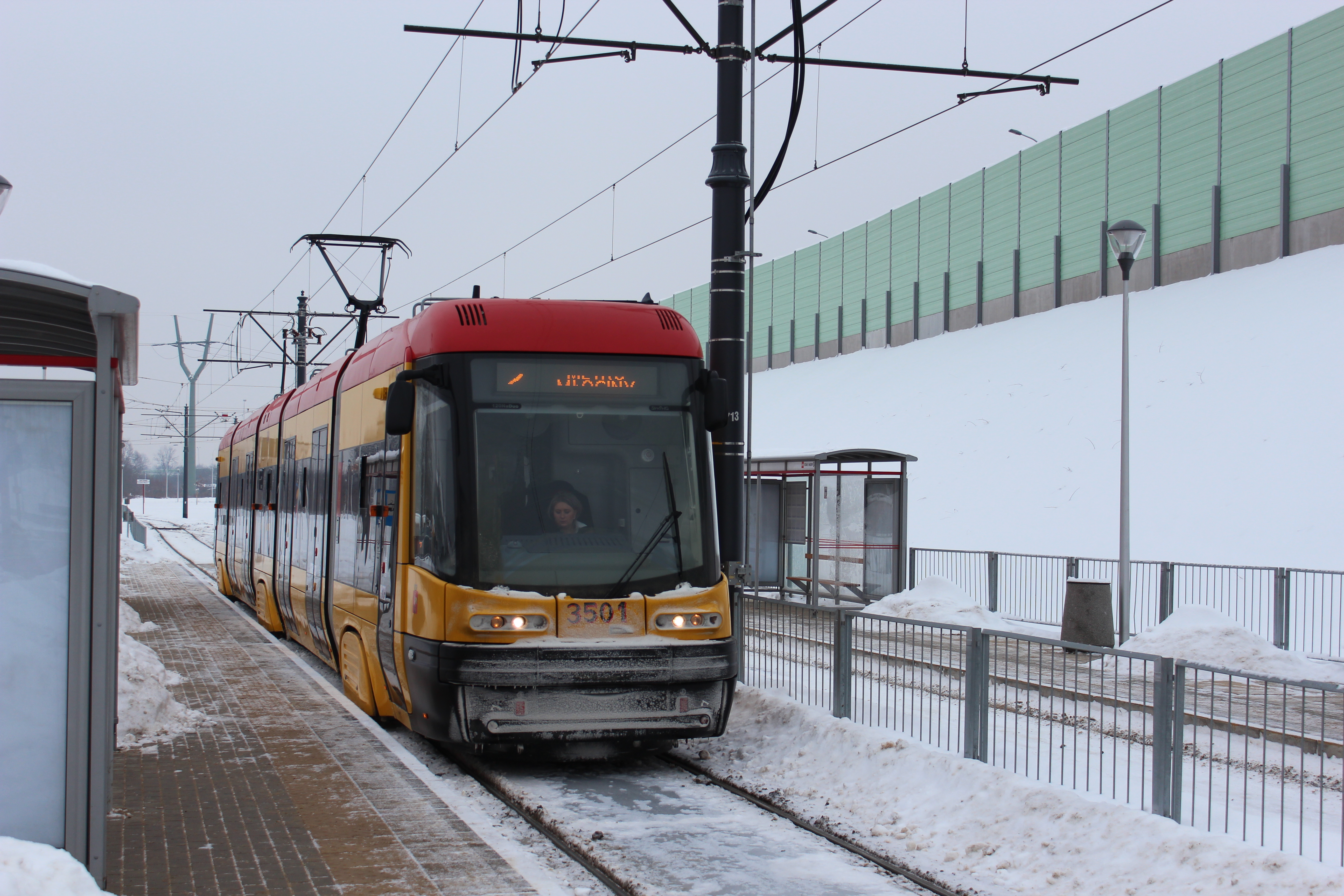 Dwukierunkowa Pesa 120NaDuo (Swing Duo) na przystanku Stare Świdry w Warszawie © OlsztyńskieTramwaje.pl