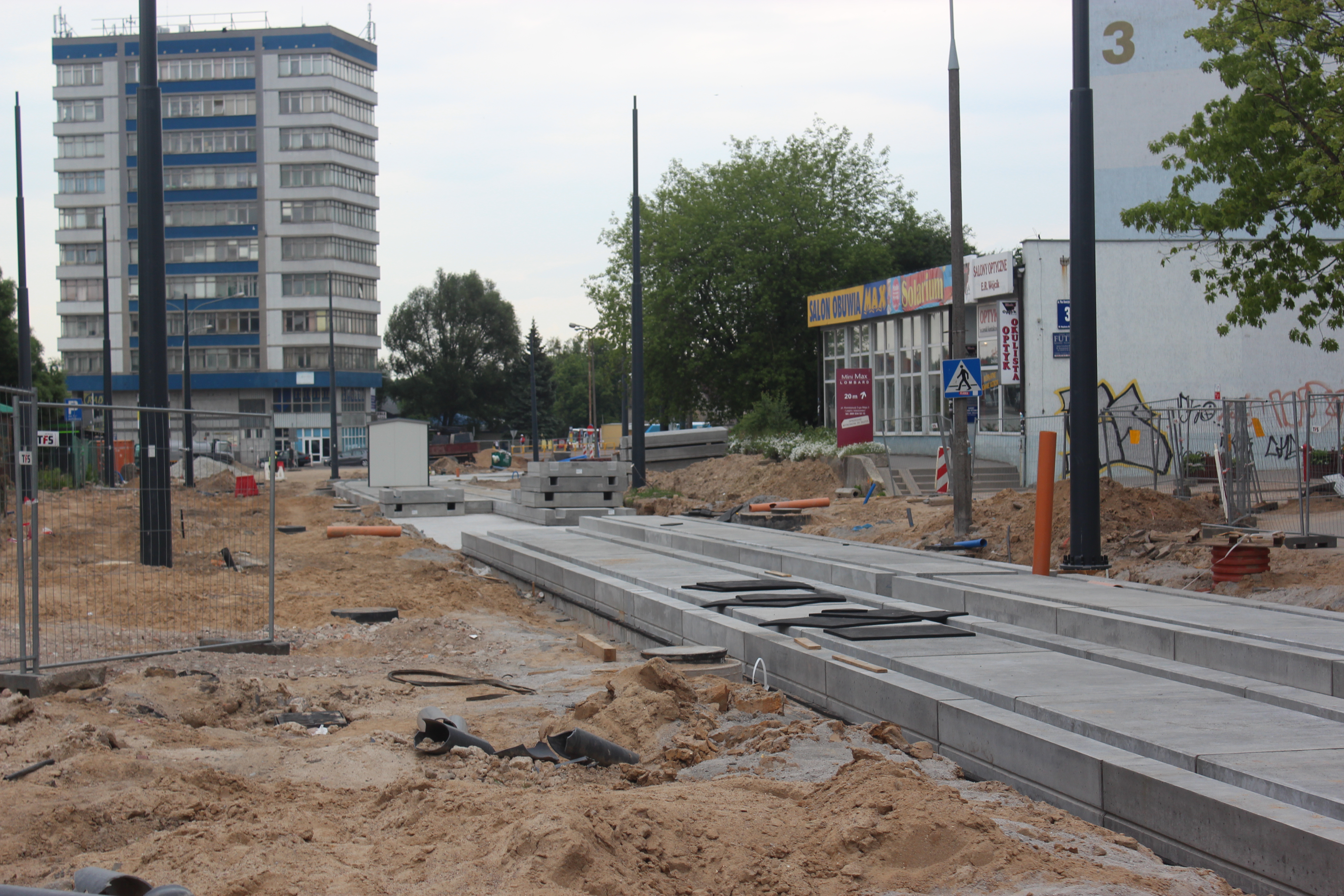 Budowa linii tramwajowej w ulicy Kościuszki (1 czerwca 2015) © OlsztyńskieTramwaje.pl