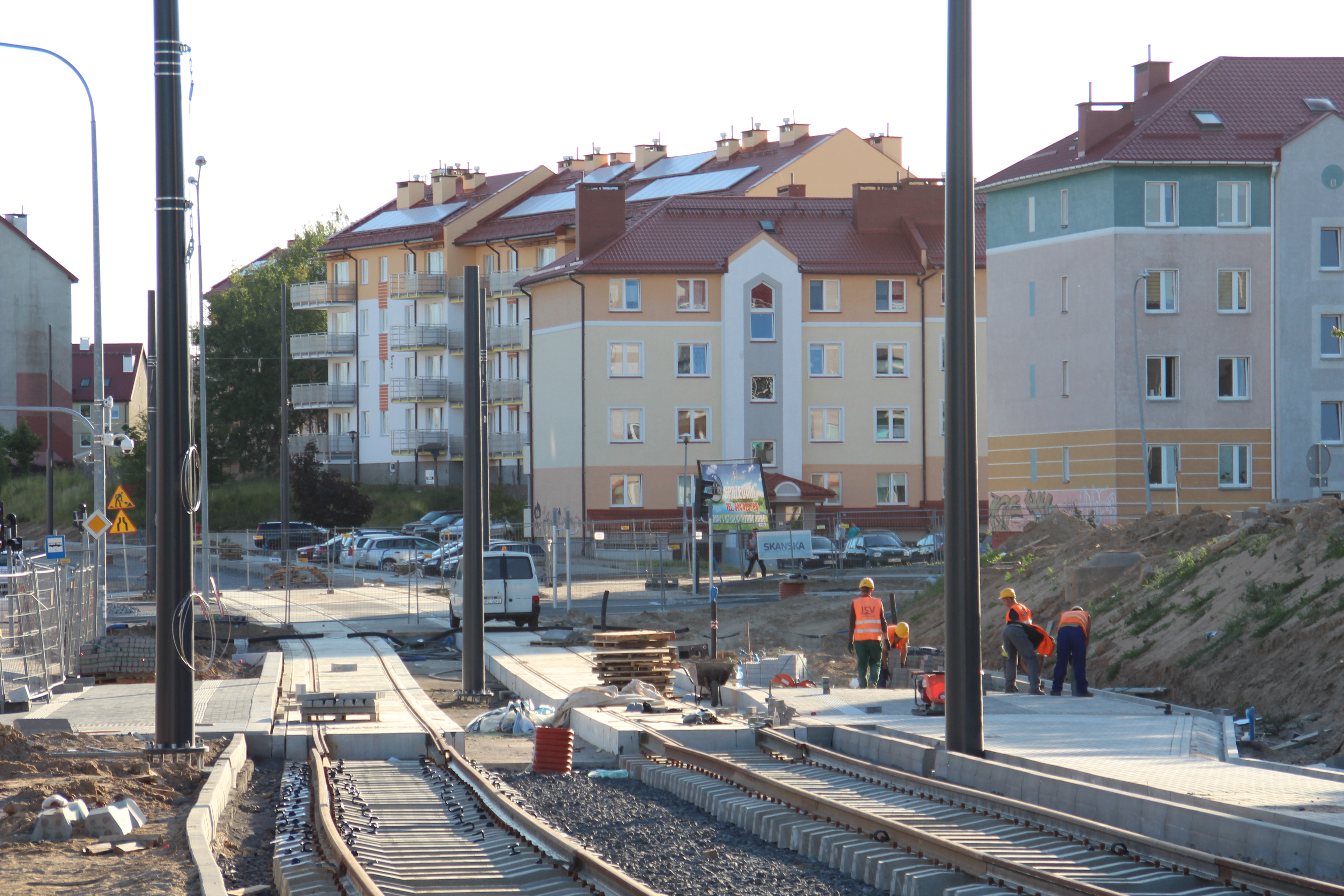 Budowa linii tramwajowej przy ulicy Witosa (15 czerwca 2015) – przystanek Laszki (dziś Witosa) © OlsztyńskieTramwaje.pl