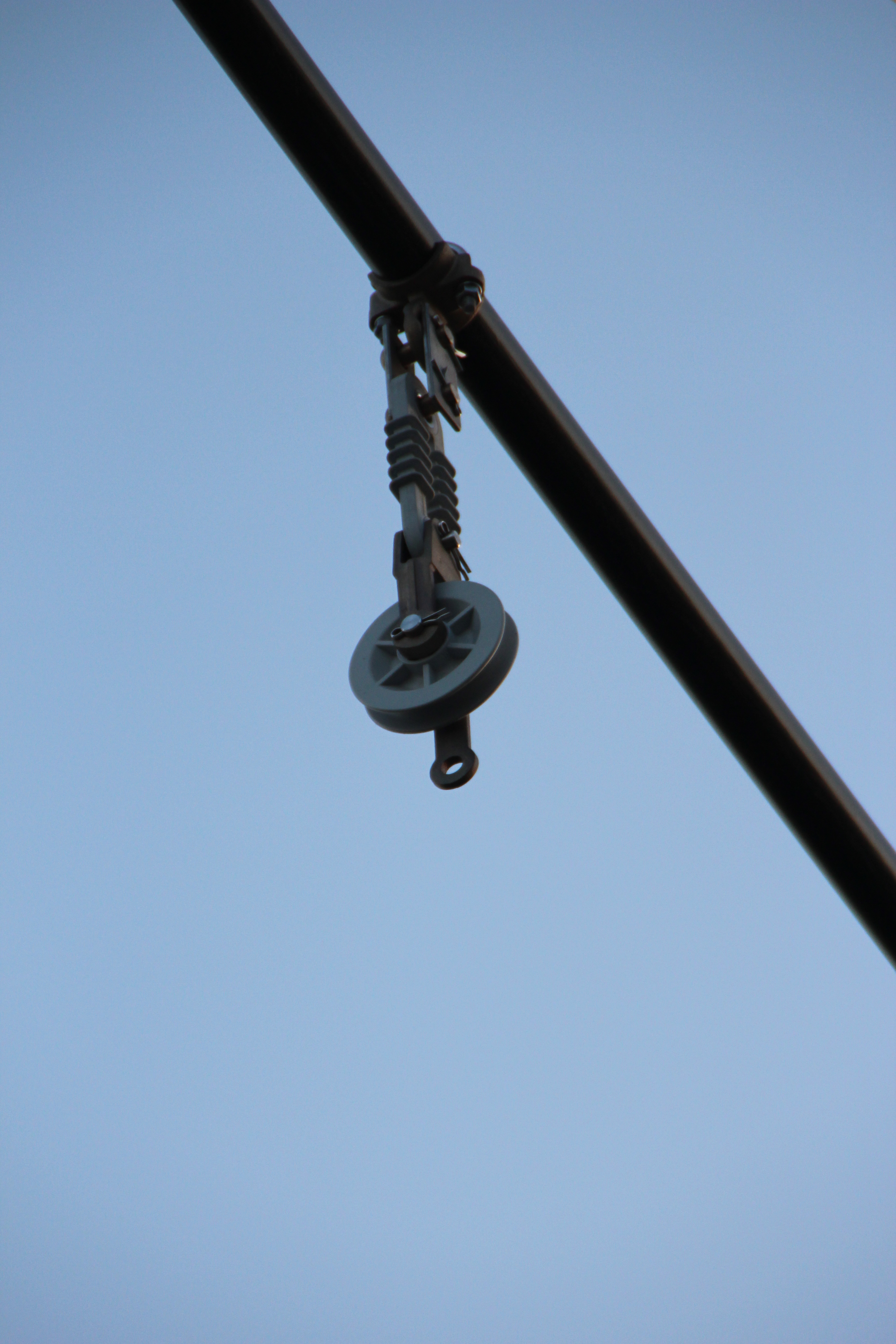 Wieszak sieci trakcyjnej na słupie przy ulicy Tuwima (15 czerwca 2015) © OlsztyńskieTramwaje.pl