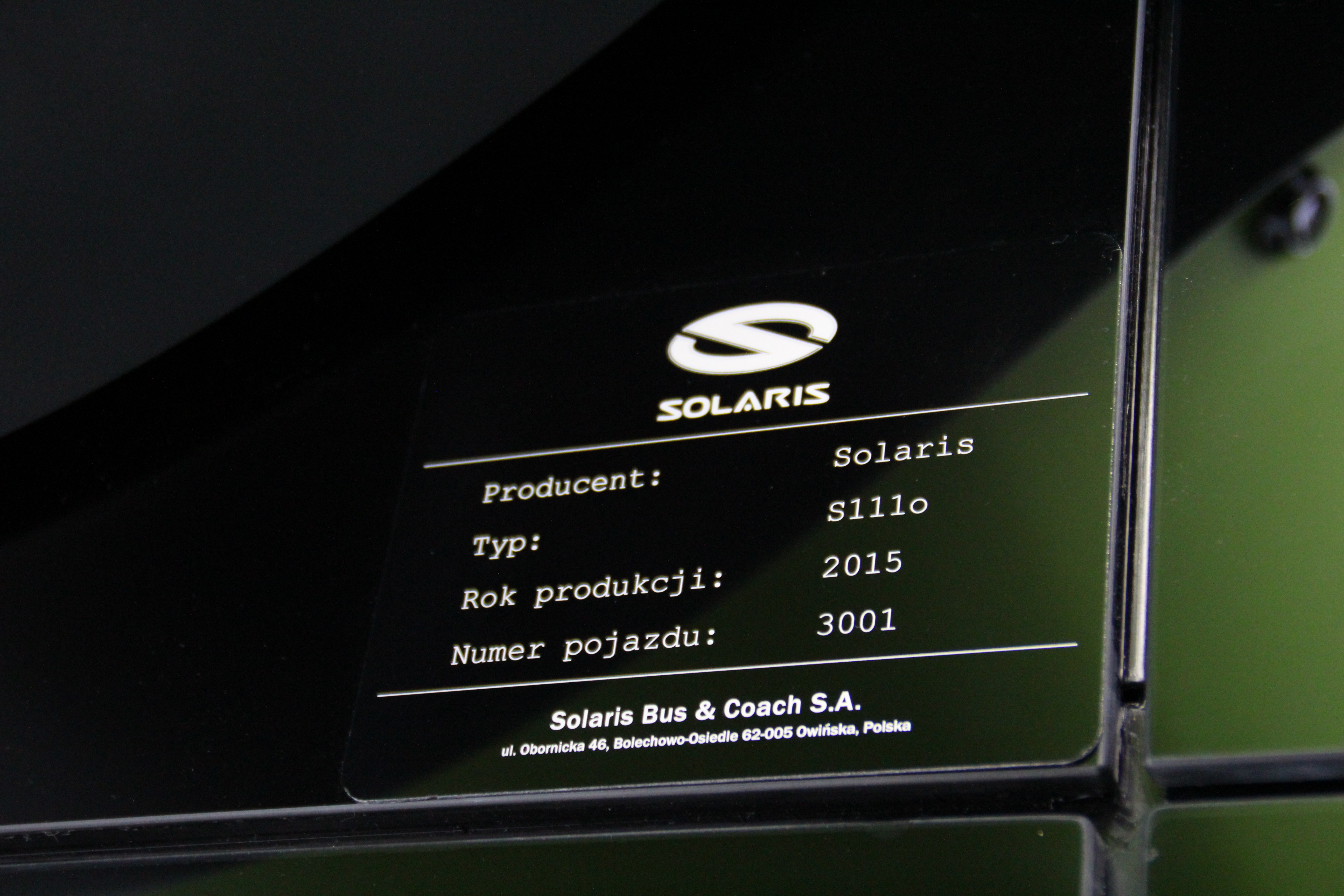 Tabliczka znamionowa Solarisa Tramino Olsztyn S111O © OlsztyńskieTramwaje.pl