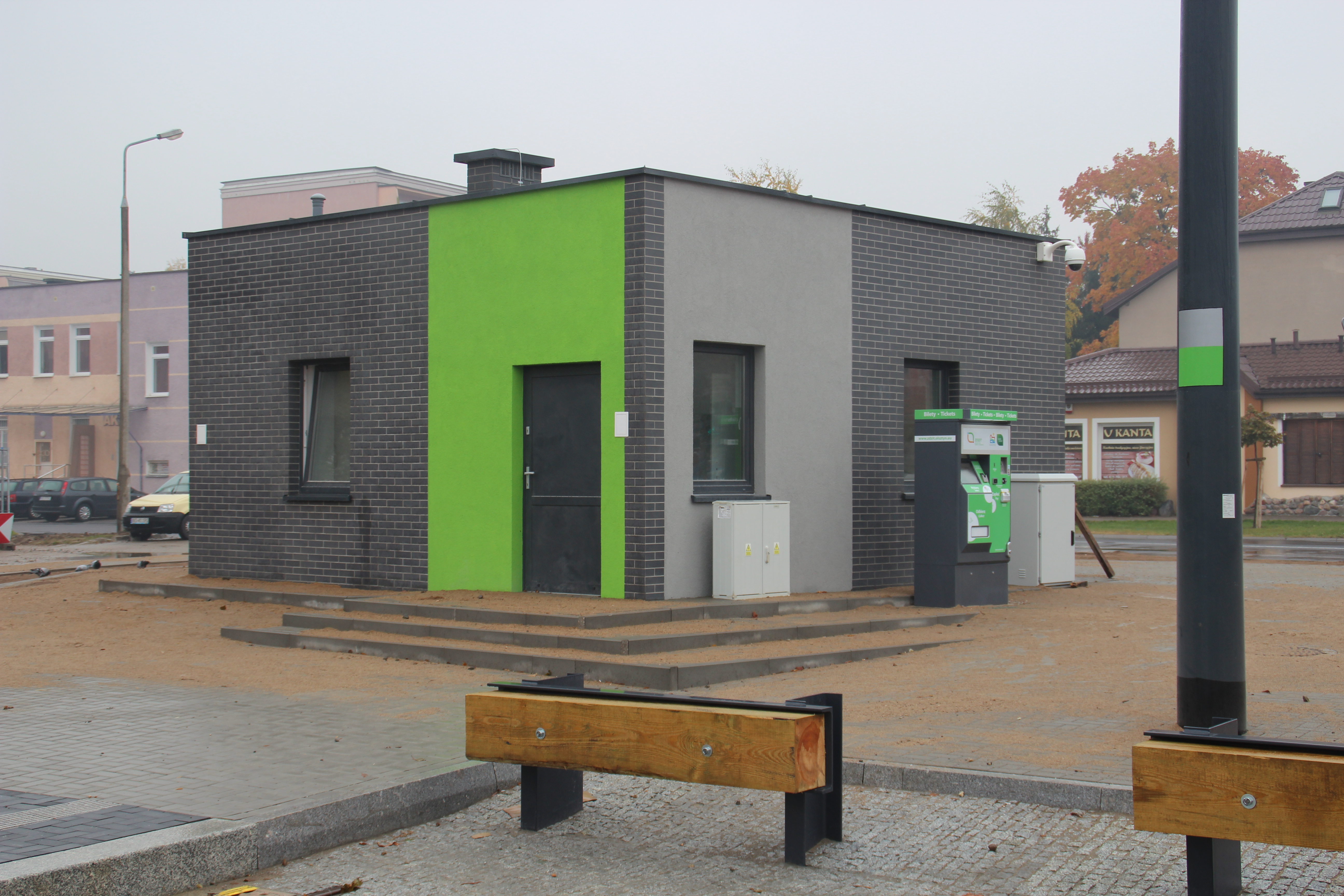 Budowa linii tramwajowej przy ulicy Witosa (18 października 2015) – budynek socjalny dla motorniczych przy przystanku końcowym Kanta © OlsztyńskieTramwaje.pl